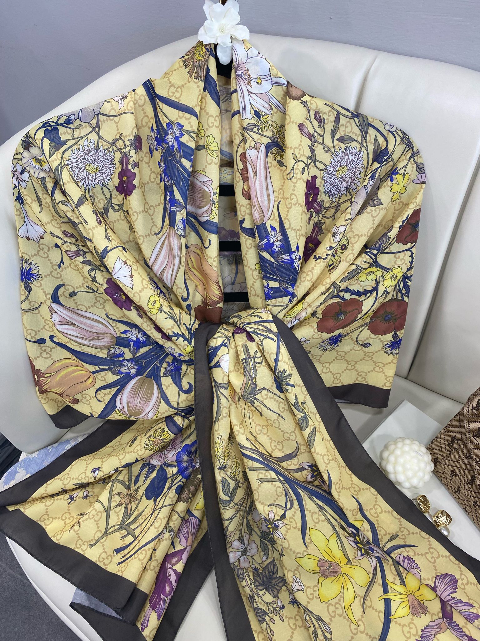 Çiçek Desen Pamuk Soft Şal 65355 – Camel