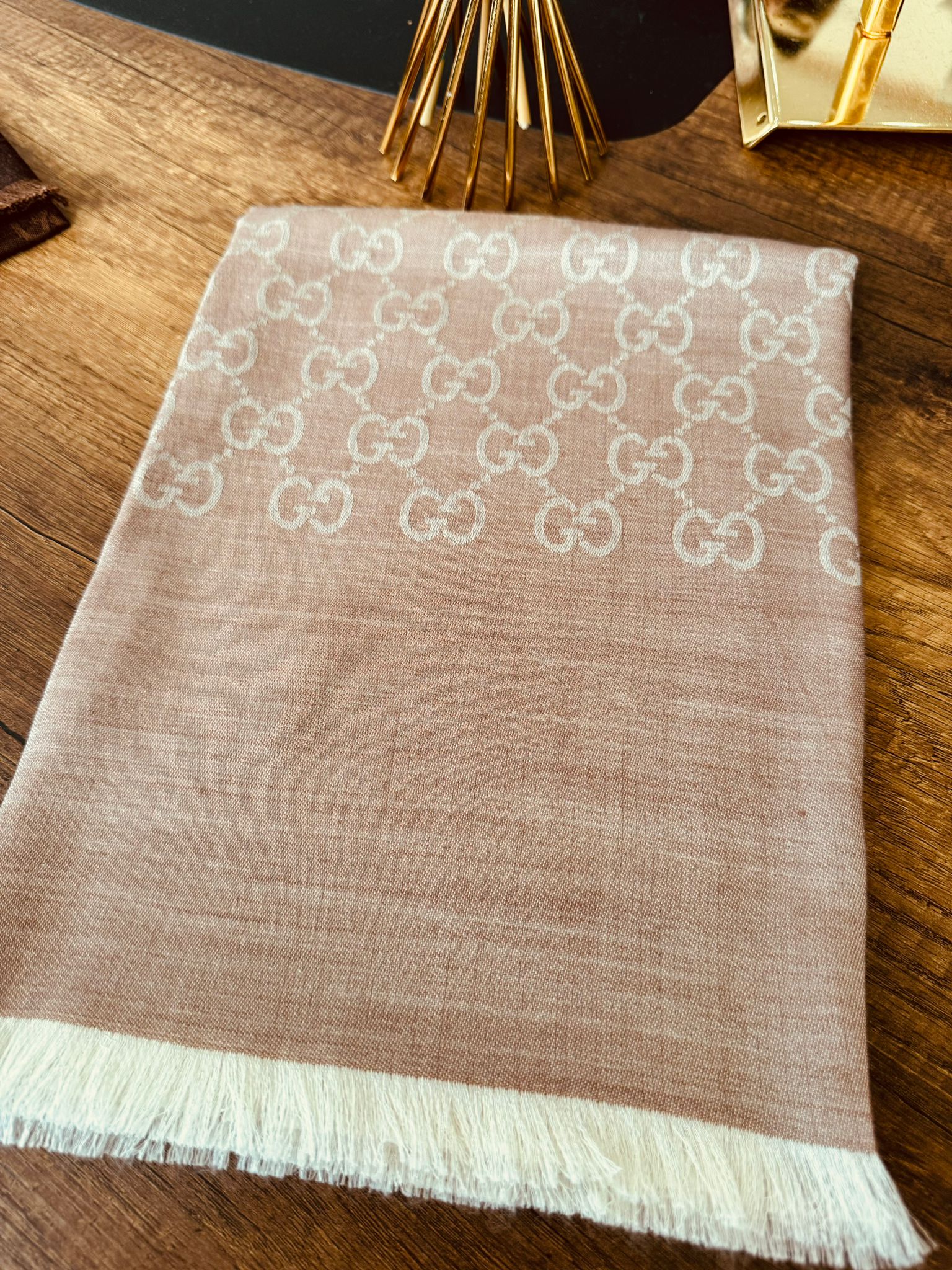 Gucci Yun İpek Çİft Taraflı Şal 87452 - Koyu Bej