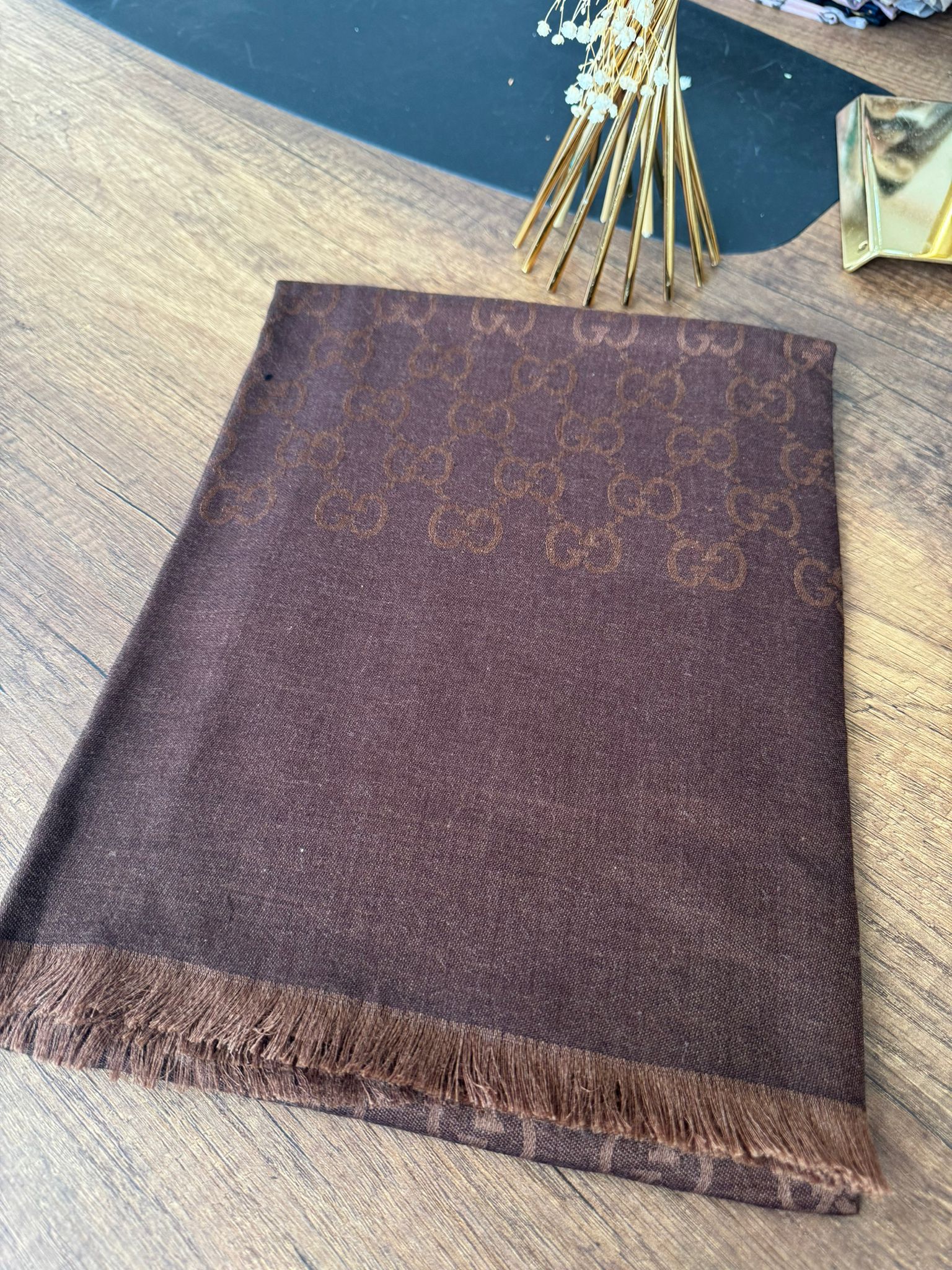 Gucci Yun İpek Çİft Taraflı Şal 87452 - Kahve