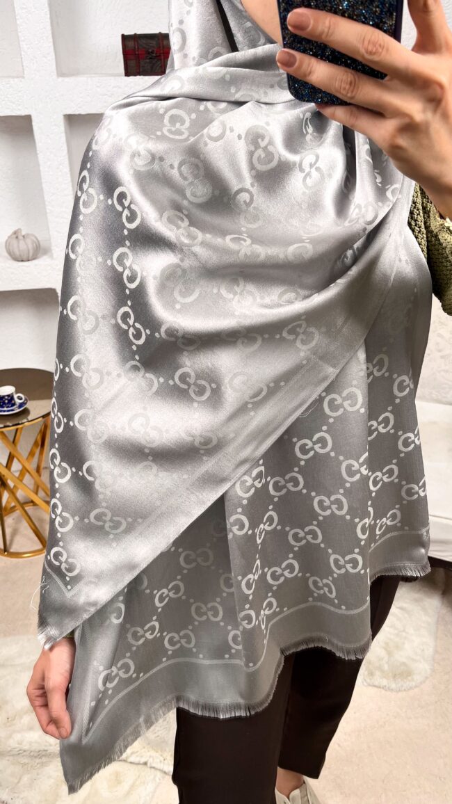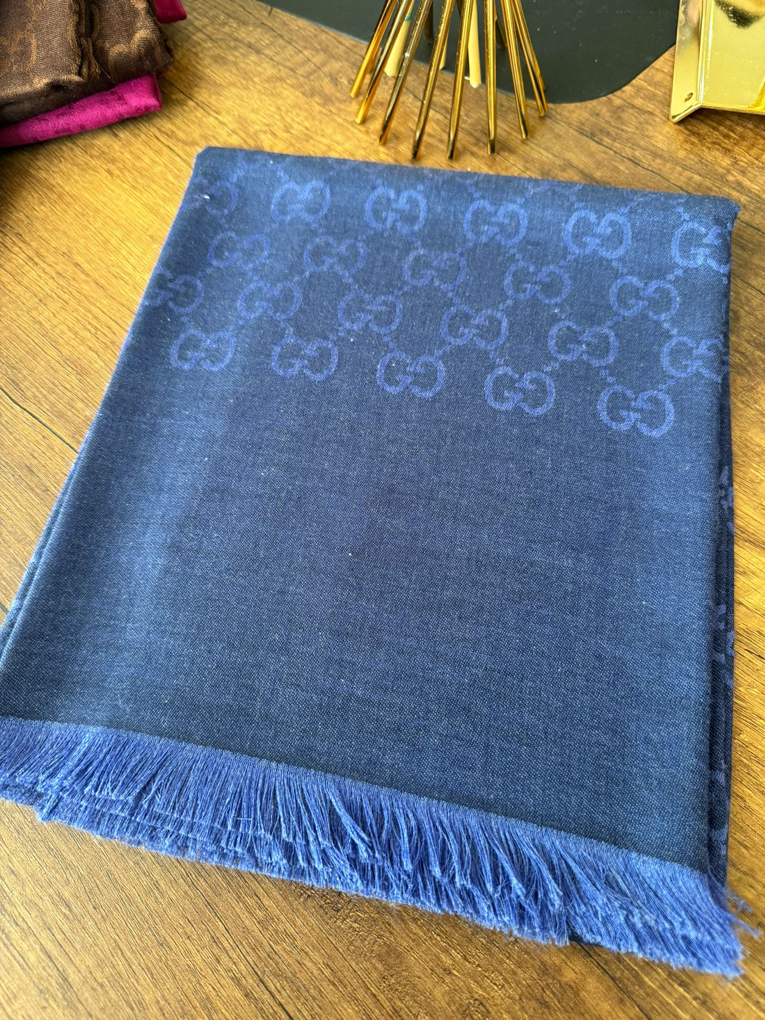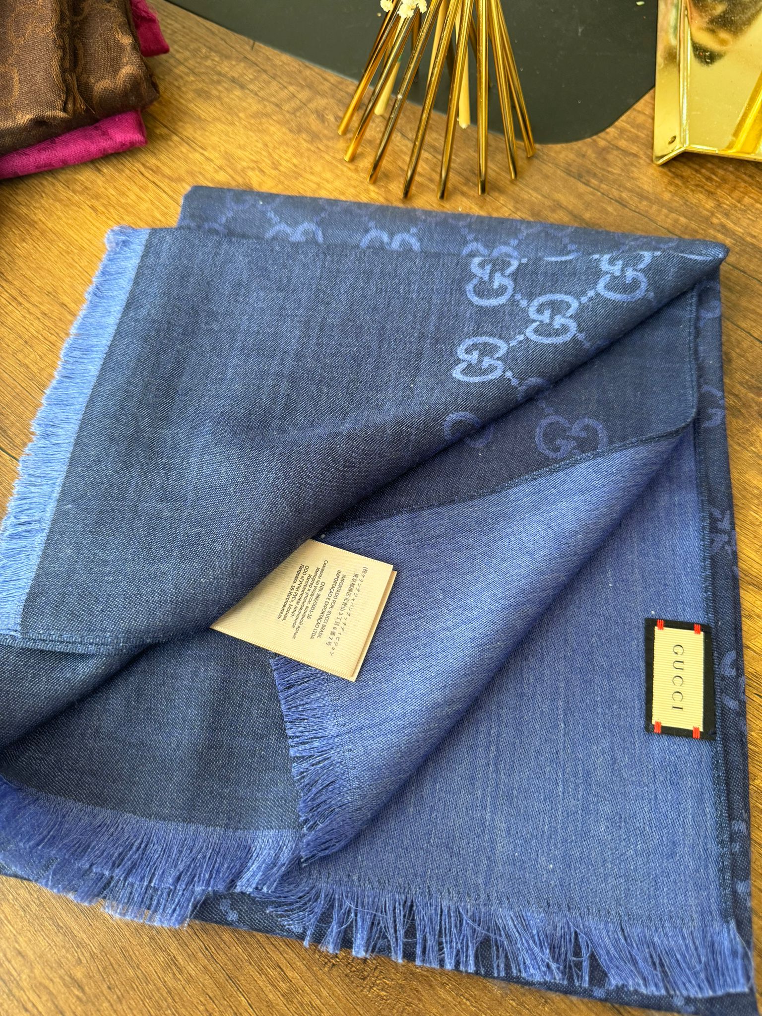 Gucci Yun İpek Çİft Taraflı Şal 87452 - Mavi