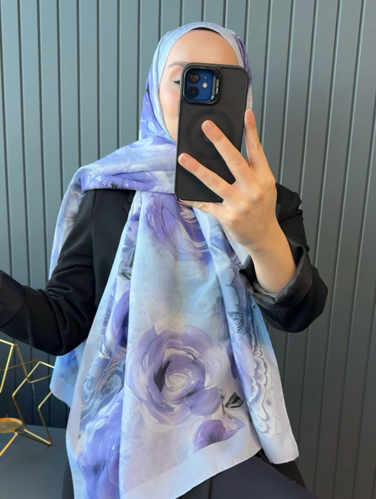 GÜL DESEN PAMUK ŞAL-989734-SİYAH-KİREMİT