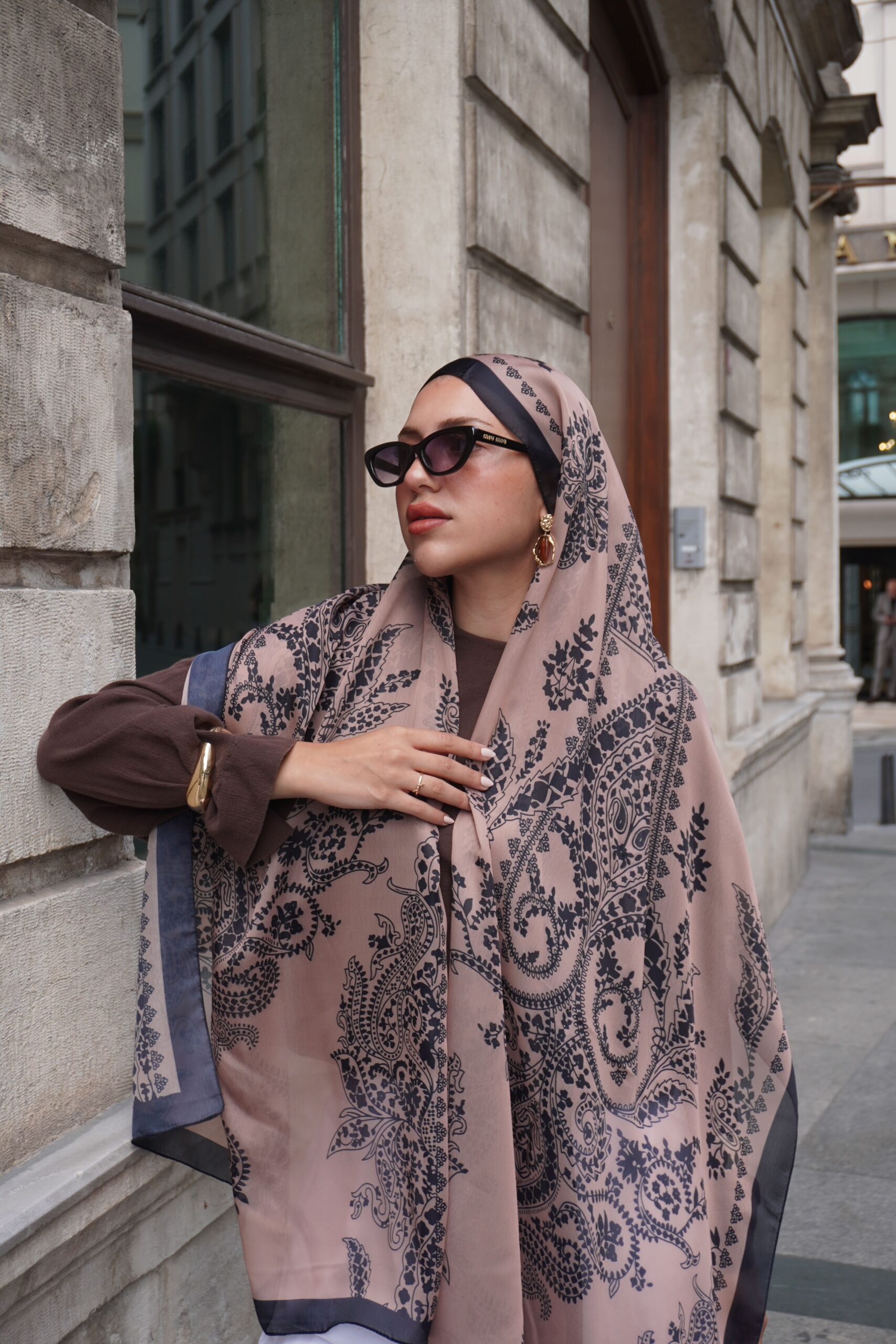 Mystic Bloom Desen Pamuk İpek Şal-Tarçın