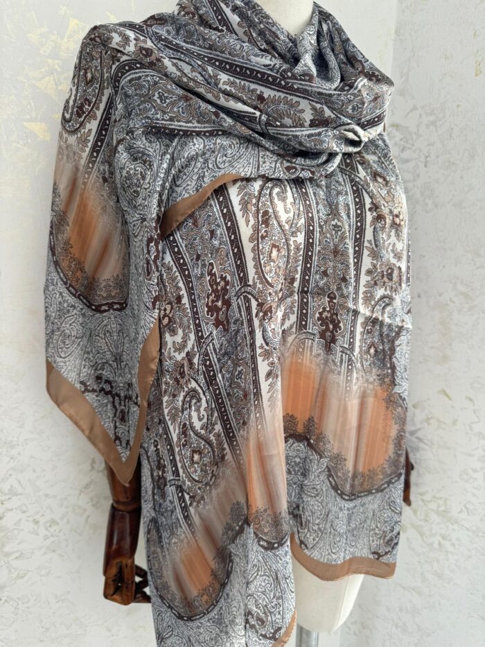 Etro Marka Yeni Sezon İthal Etnik Desen Vual İpek Şal – Vizon