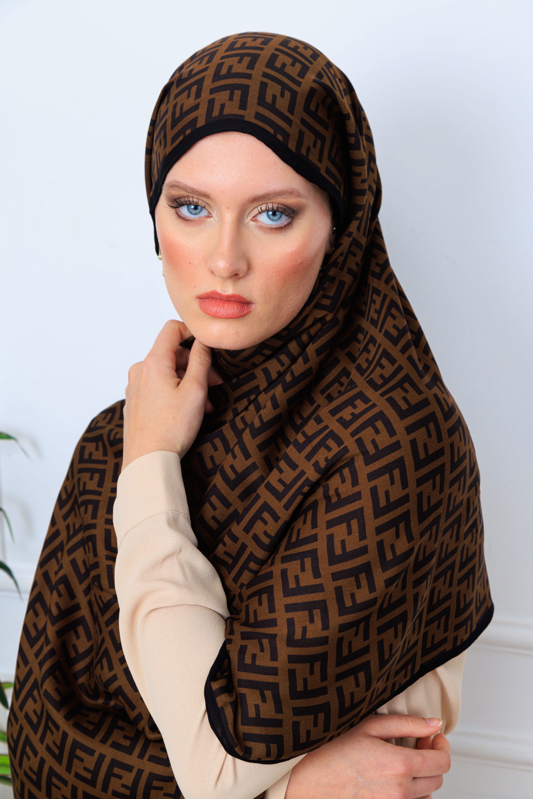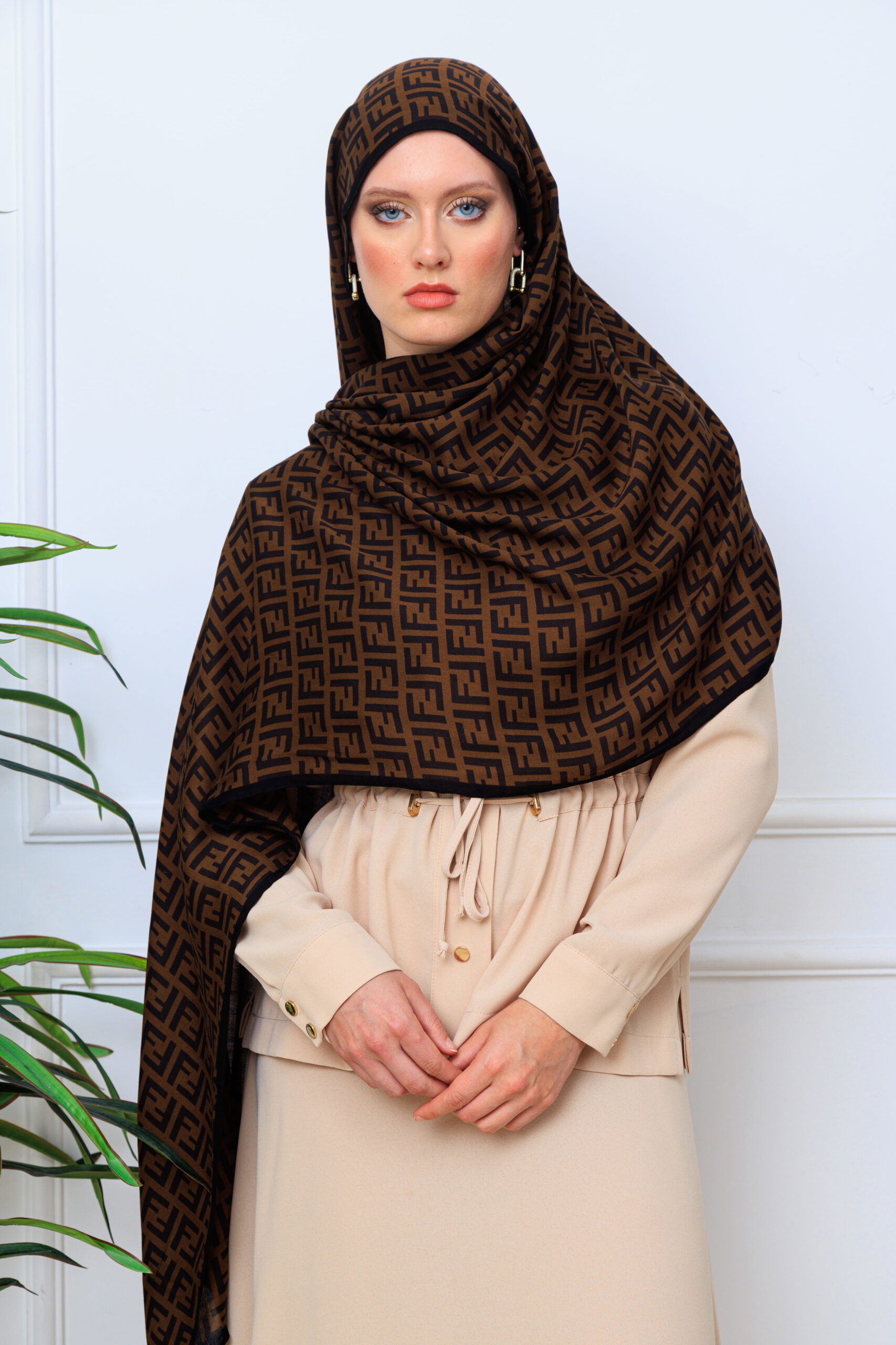 İTHAL A+ Fendi Yün İpek Çift Taraflı Marka Şal 87478 - Siyah Biyeli