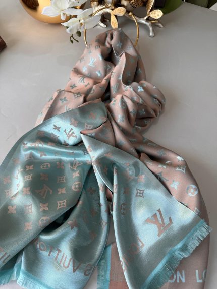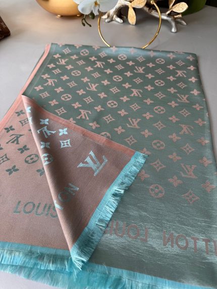 LV DESEN Çift taraflı İpeksi Jakar Şal – Mint