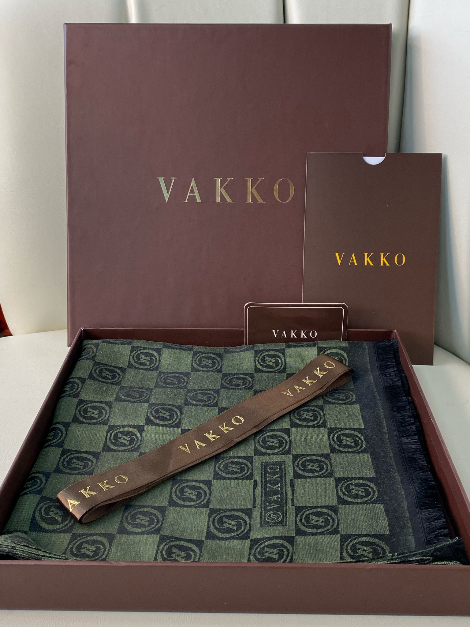İthal Full Set Kutulu A Kalite Vakko Pamuk İpek Şal 4434 -Haki