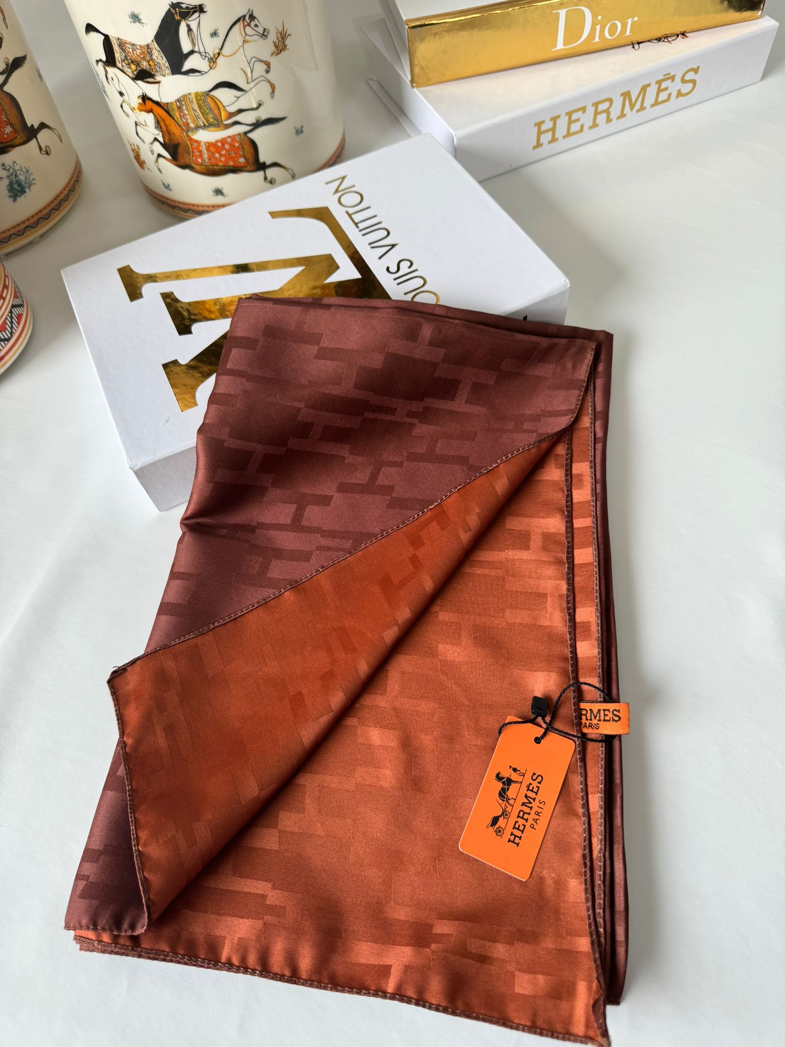 İthal Hermes Çift Taraflı İpek Şal – Çikolata/Taba