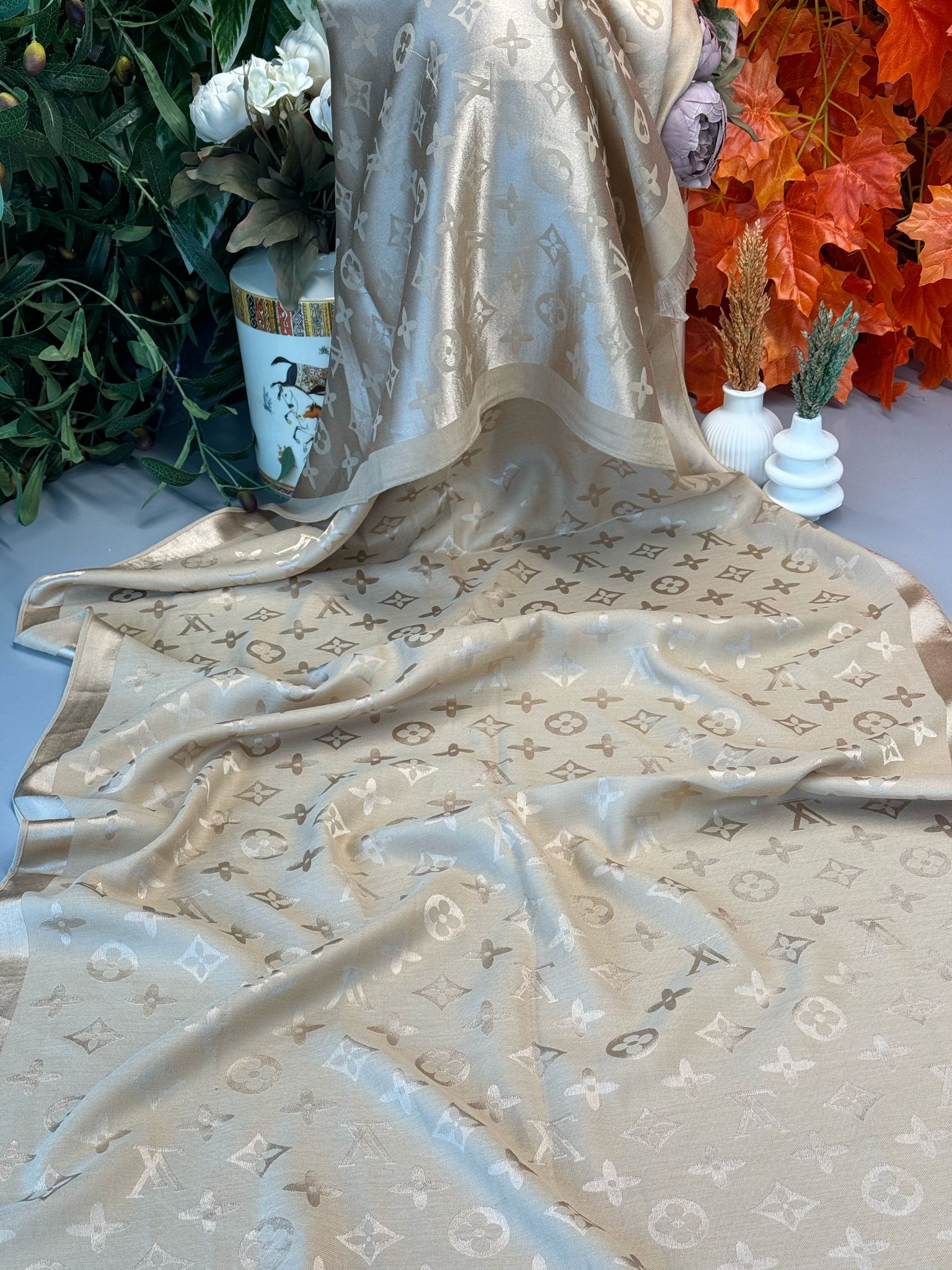 İthal Lv Kaşmir İpek Şal- Koyu Bej