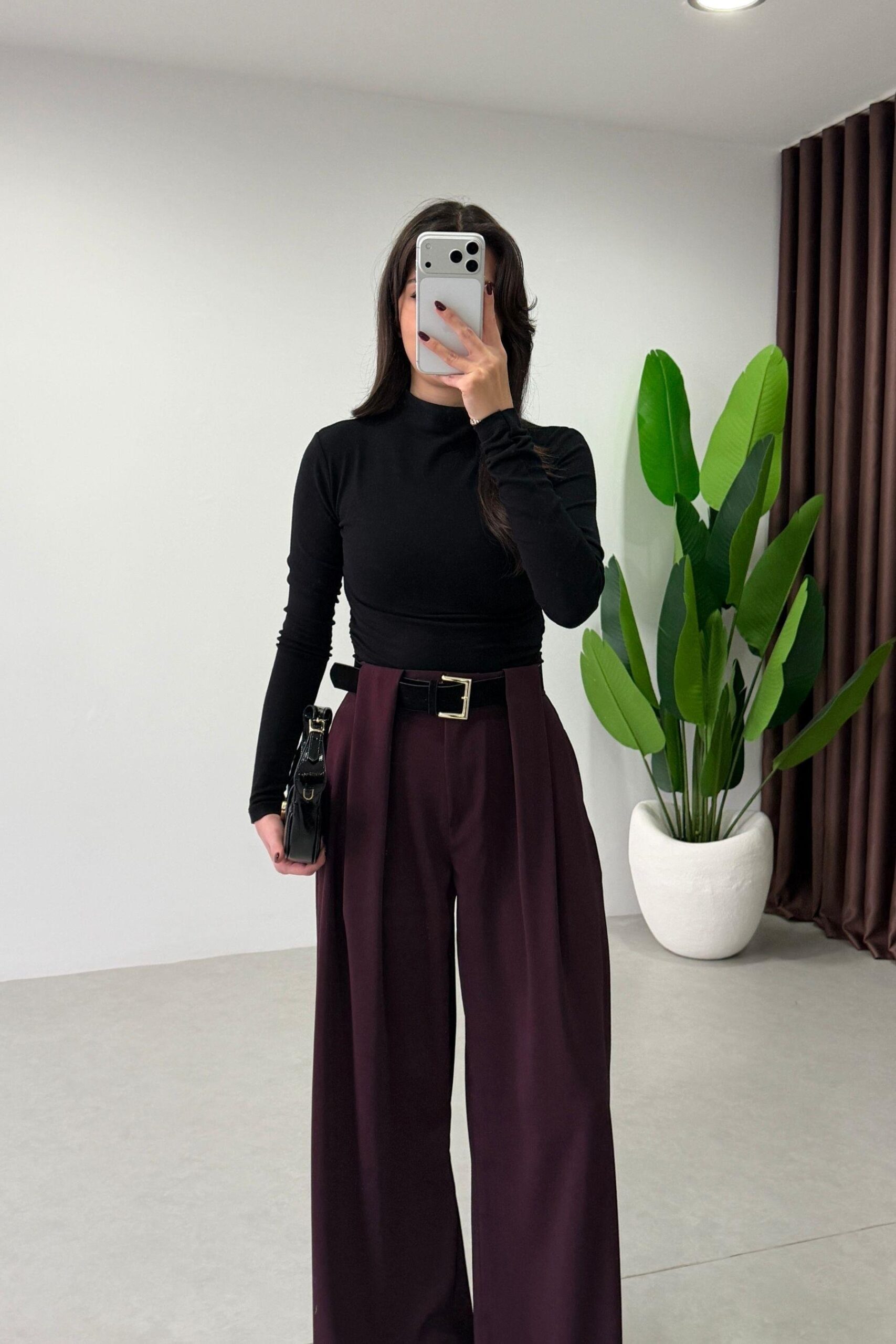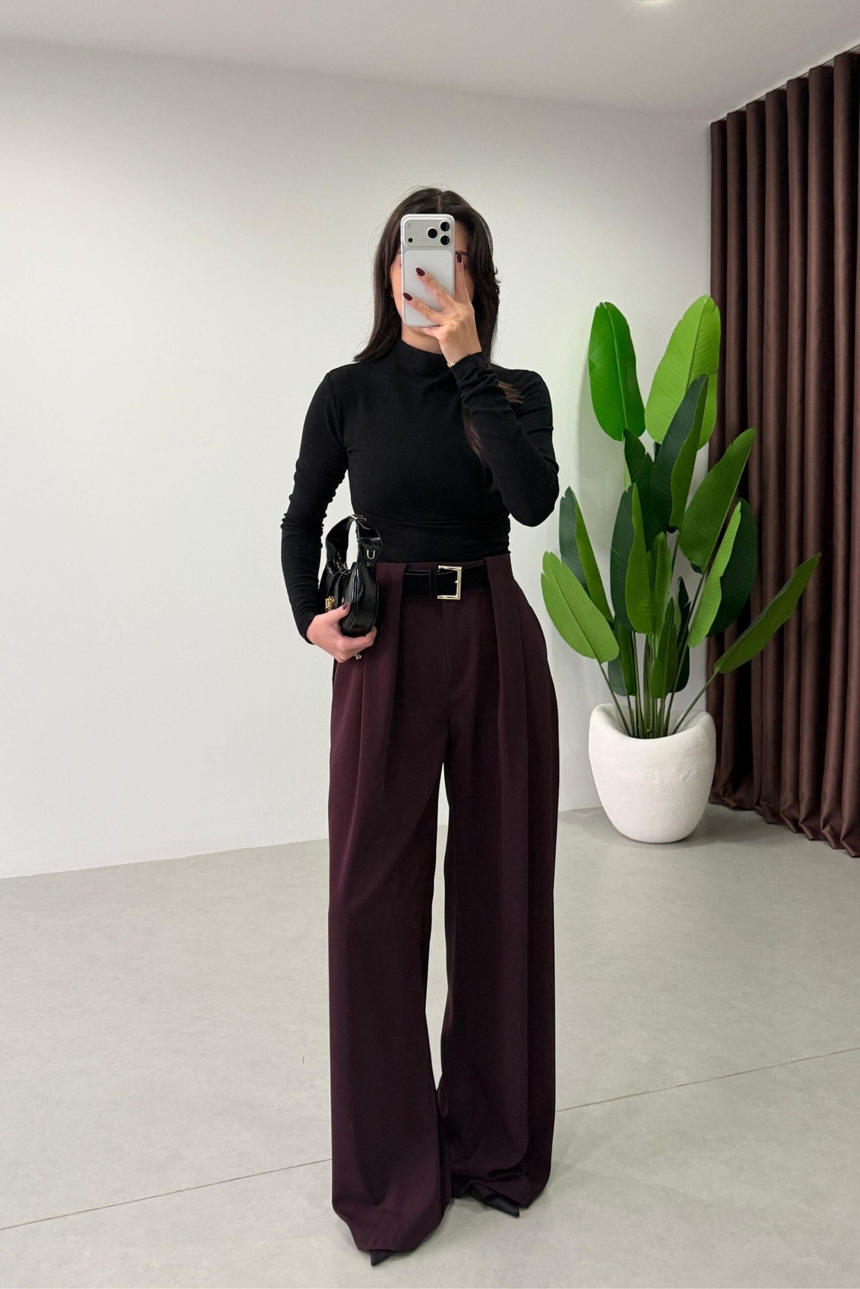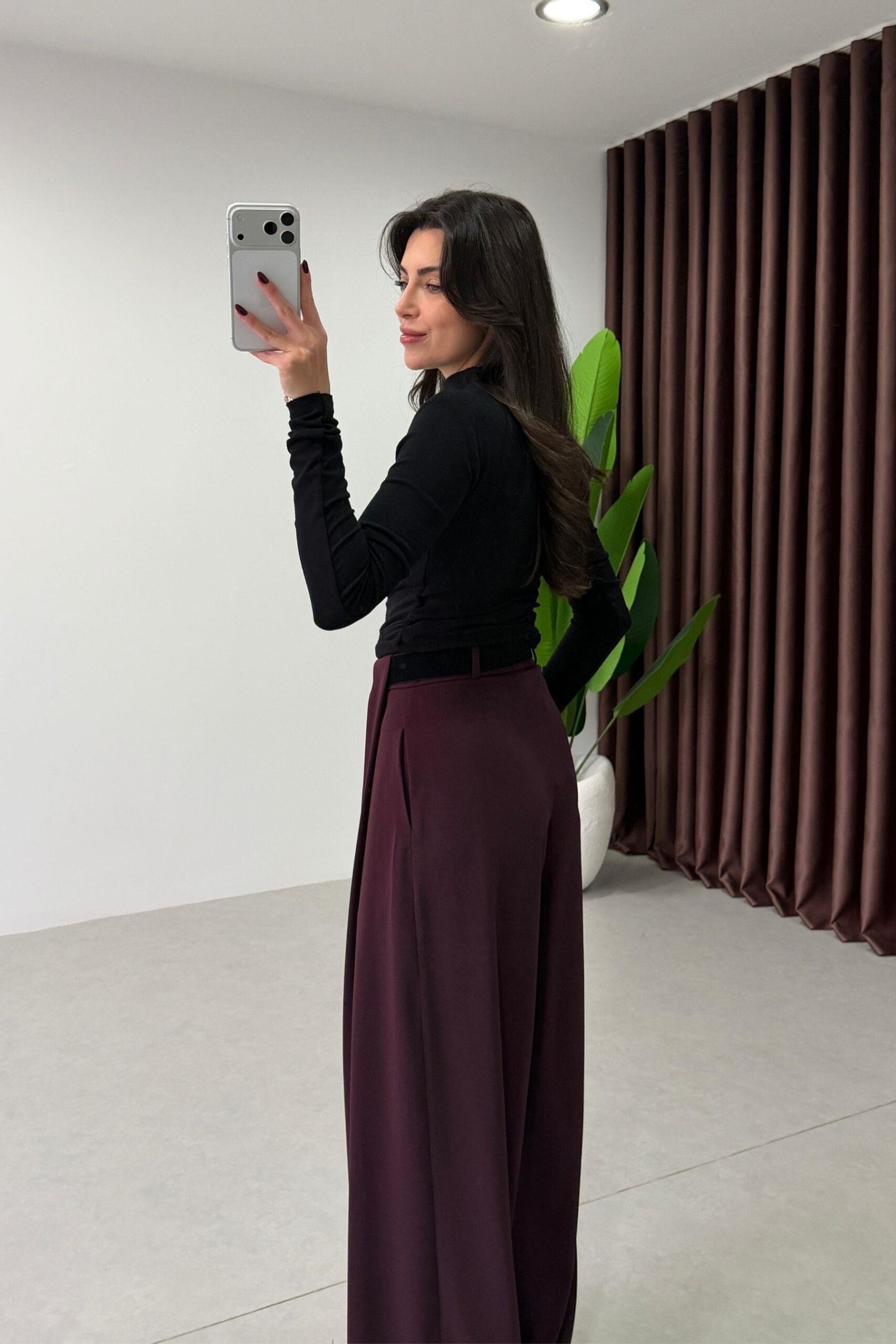 Köprü Detaylı Kemerli Palazzo Pantolon – Bordo