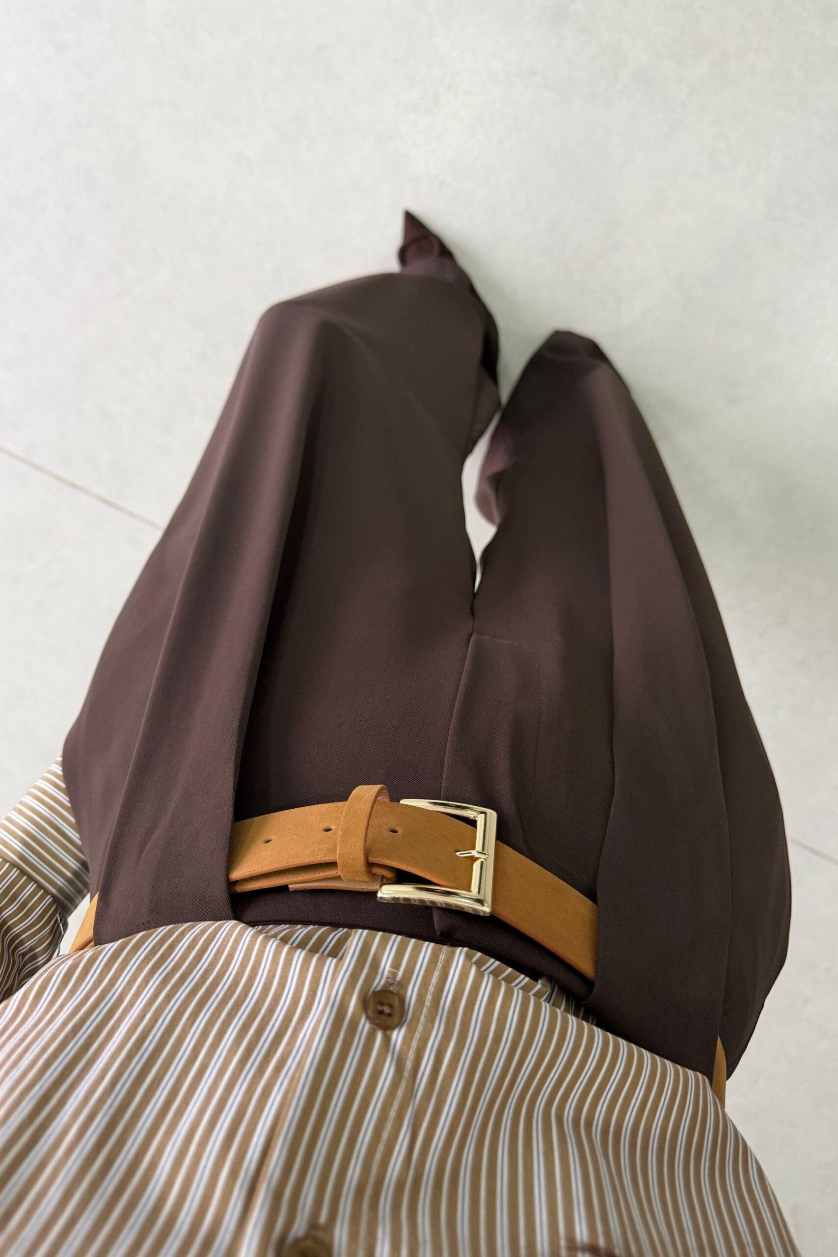 Köprü Detaylı Kemerli Palazzo Pantolon – Kahve