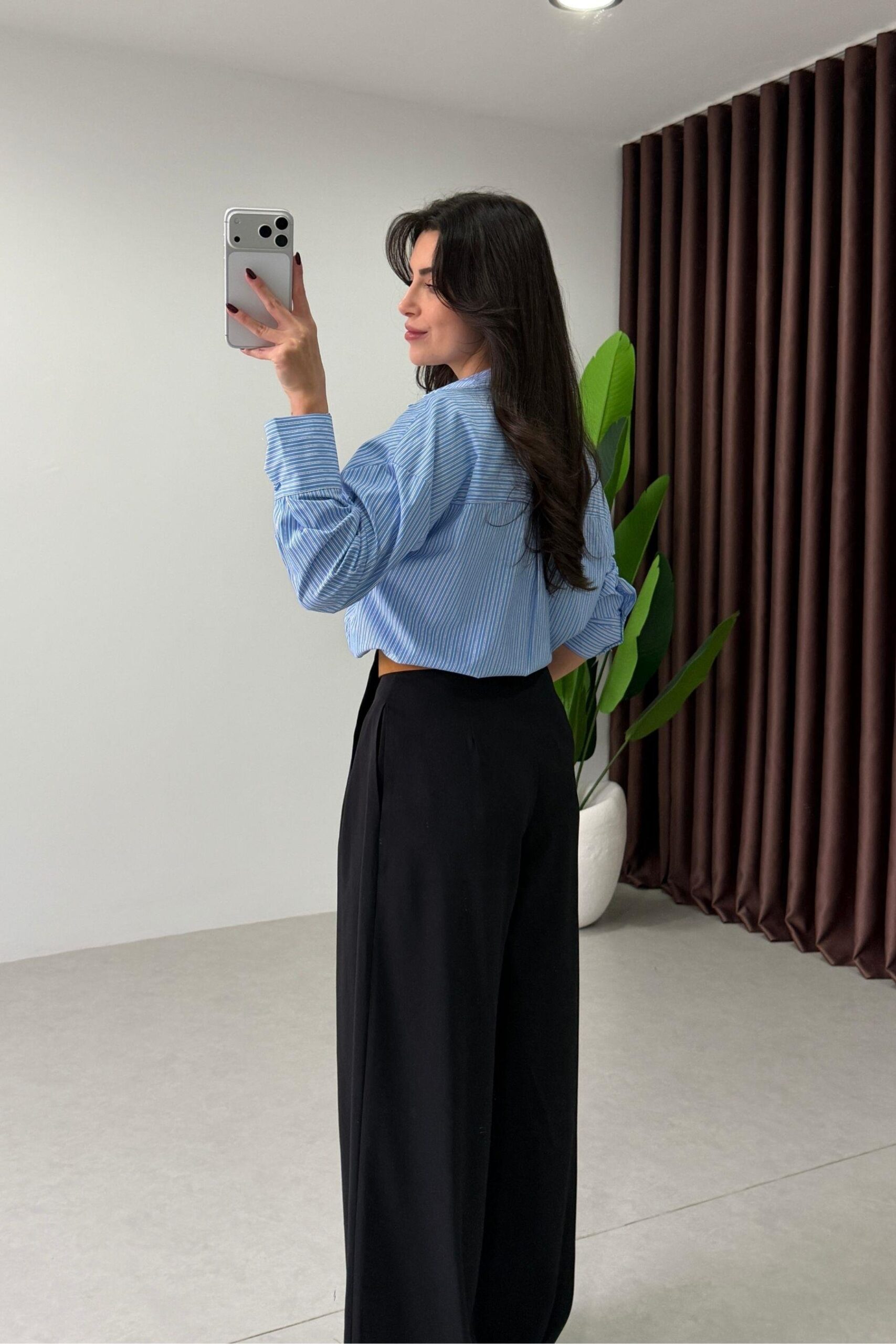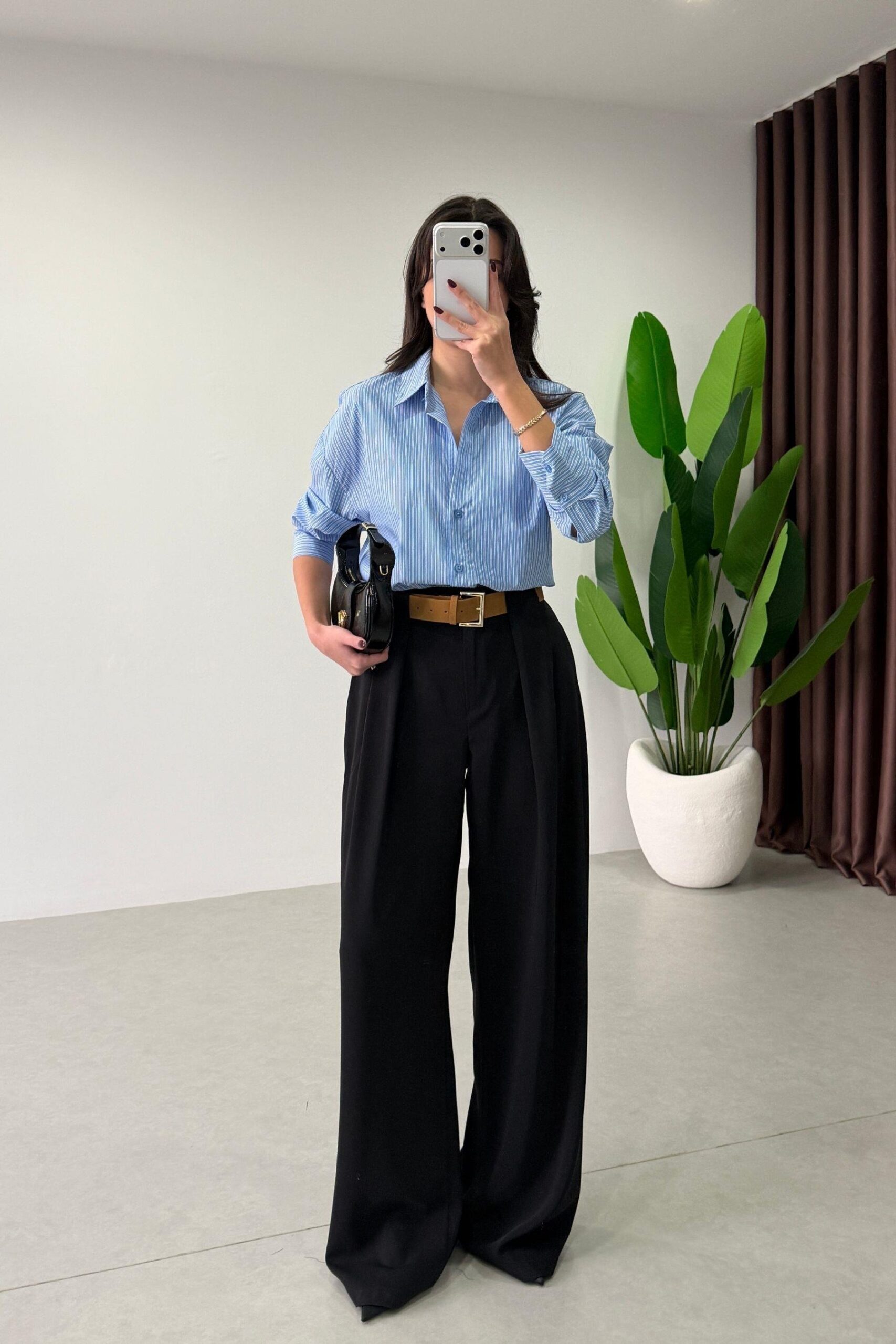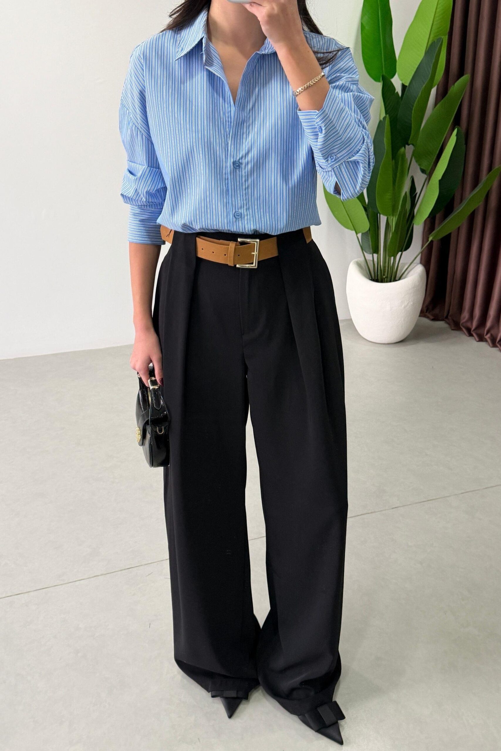 Köprü Detaylı Kemerli Palazzo Pantolon – Siyah