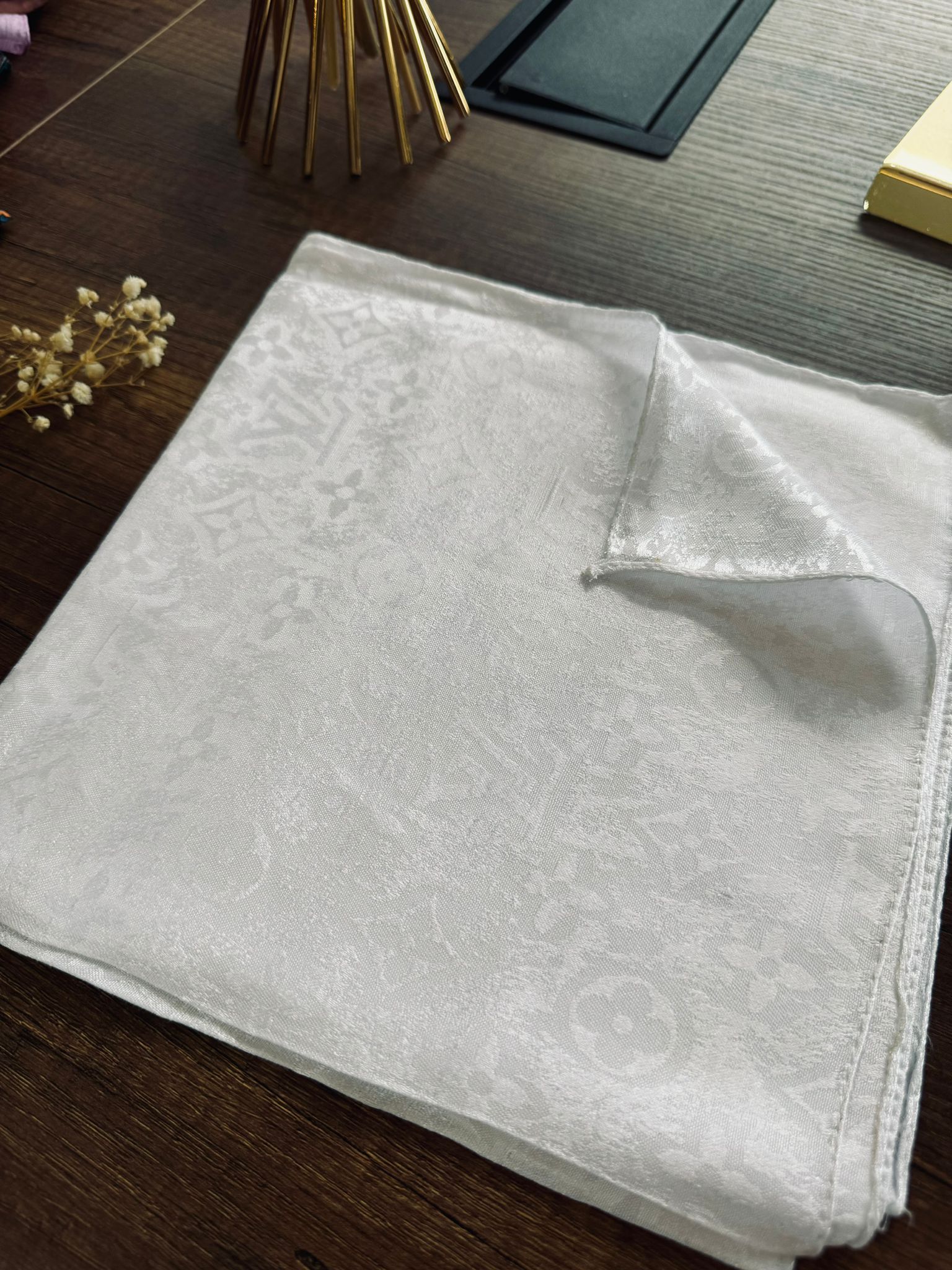 LV Desen Jakar Eşarp 48971 – Kırık Beyaz