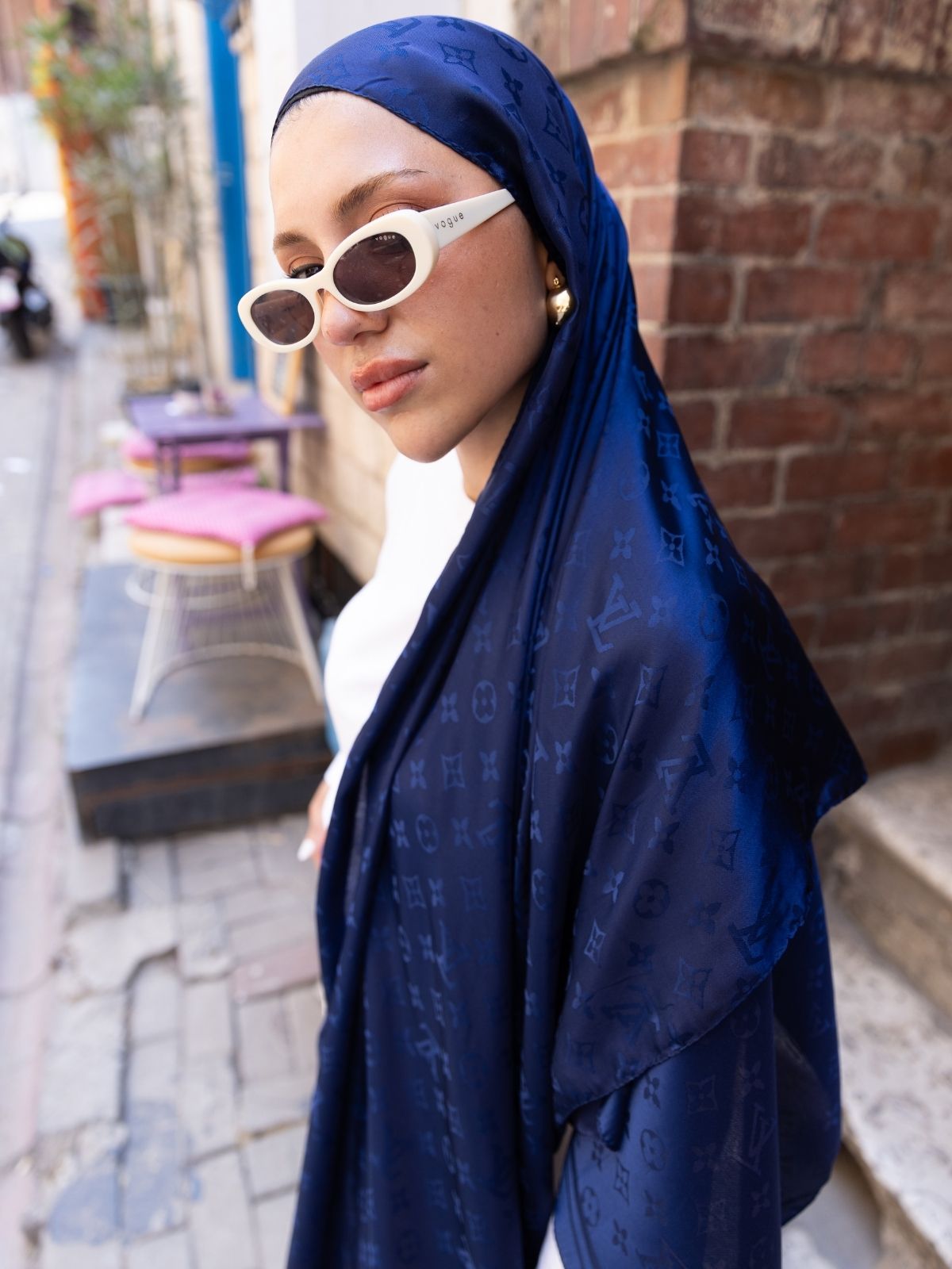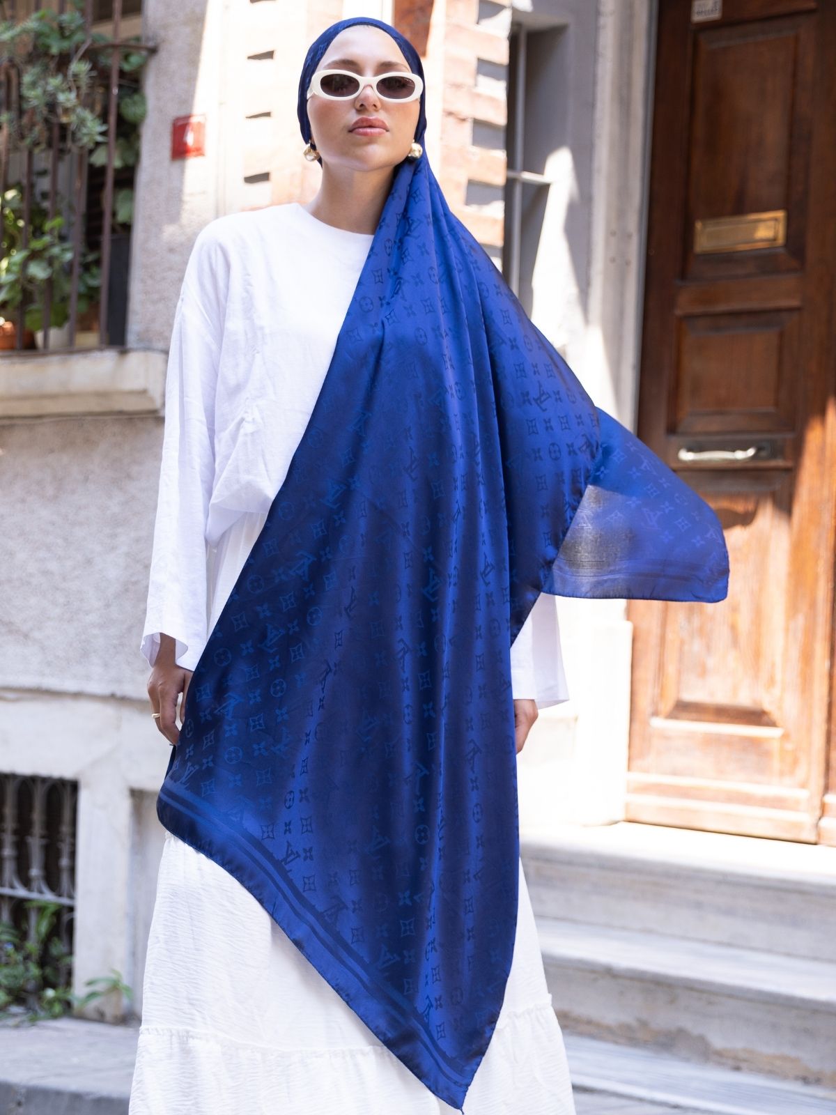 Desen Pamuk İpeksi Jakar Şal-53354-Lacivert