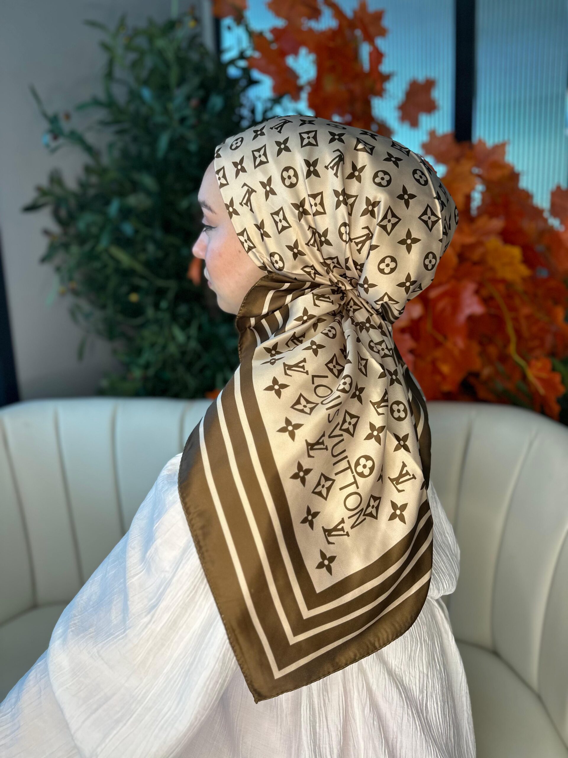 Lv Desen Vual İpek Eşarp-6204527-Karamel Kahve