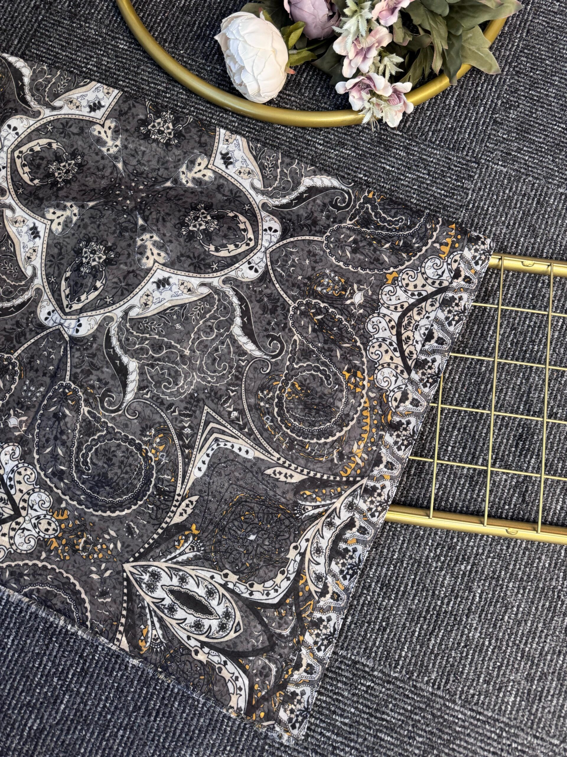 Miras Paisley Doğal Pamuk Şal-Pamuk Şekeri -Hardal