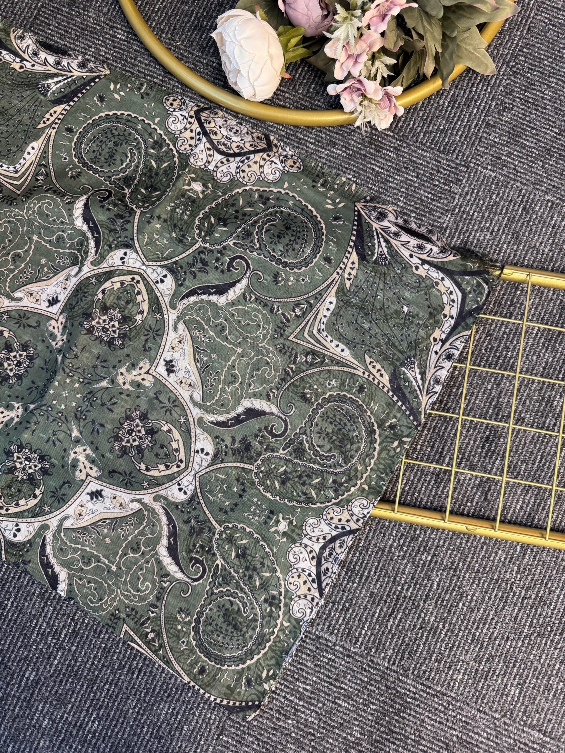 Miras Paisley Doğal Pamuk Şal-Zeytin Yeşili