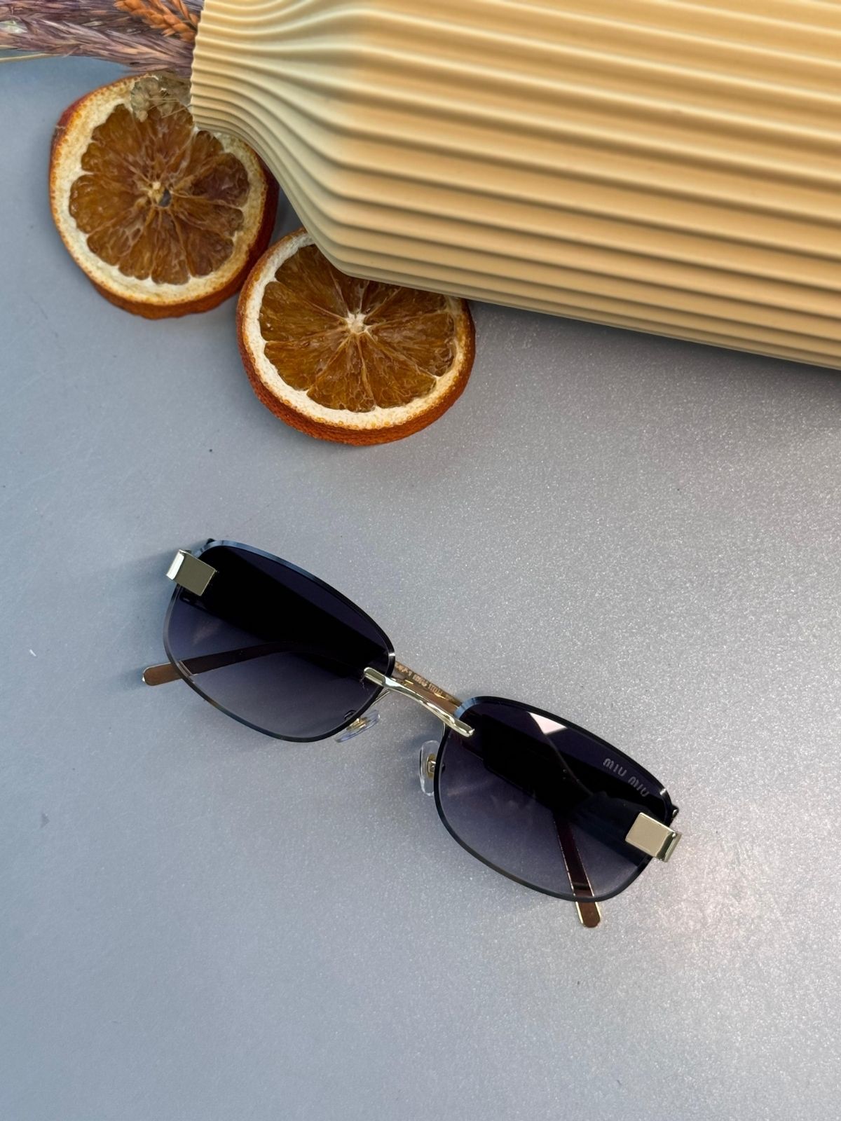 Mıu Mıu Kare Kesik Cam Detaylı Güneş Gözlüğü – Lacivert Degrade