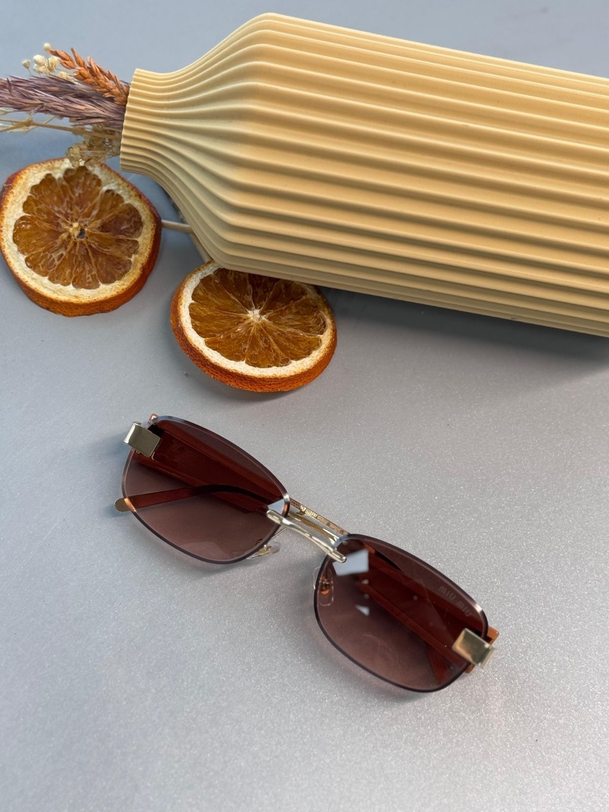Mıu Mıu Kare Kesik Cam Detaylı Güneş Gözlüğü – Turuncu