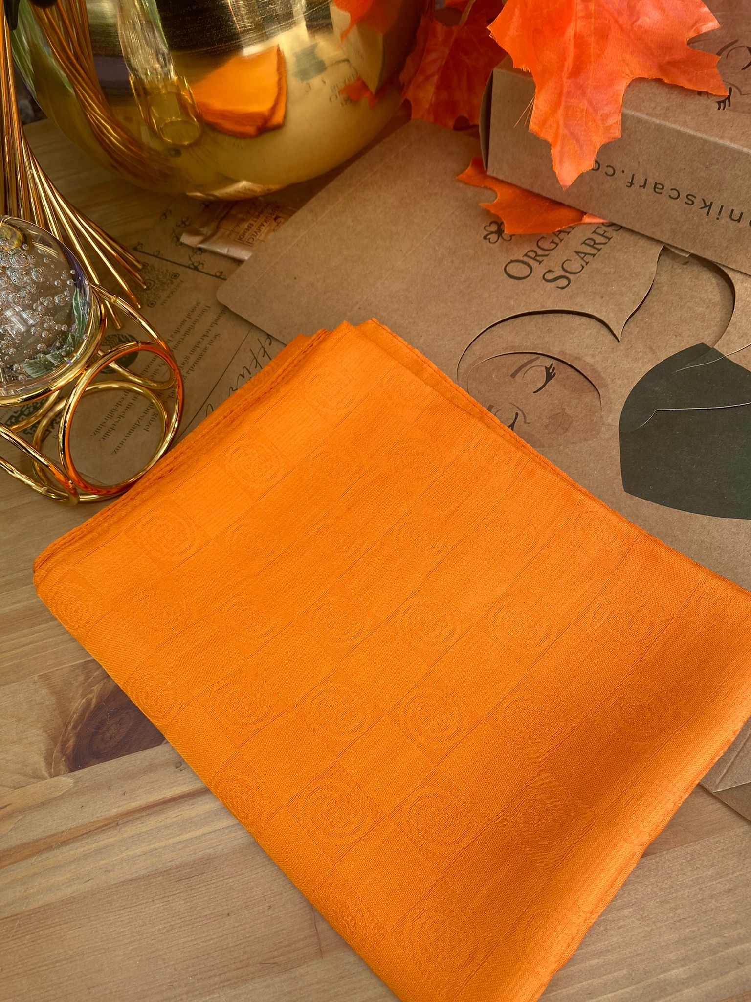 Monogram Desen Pamuk İpek Jakar Şal – Turuncu
