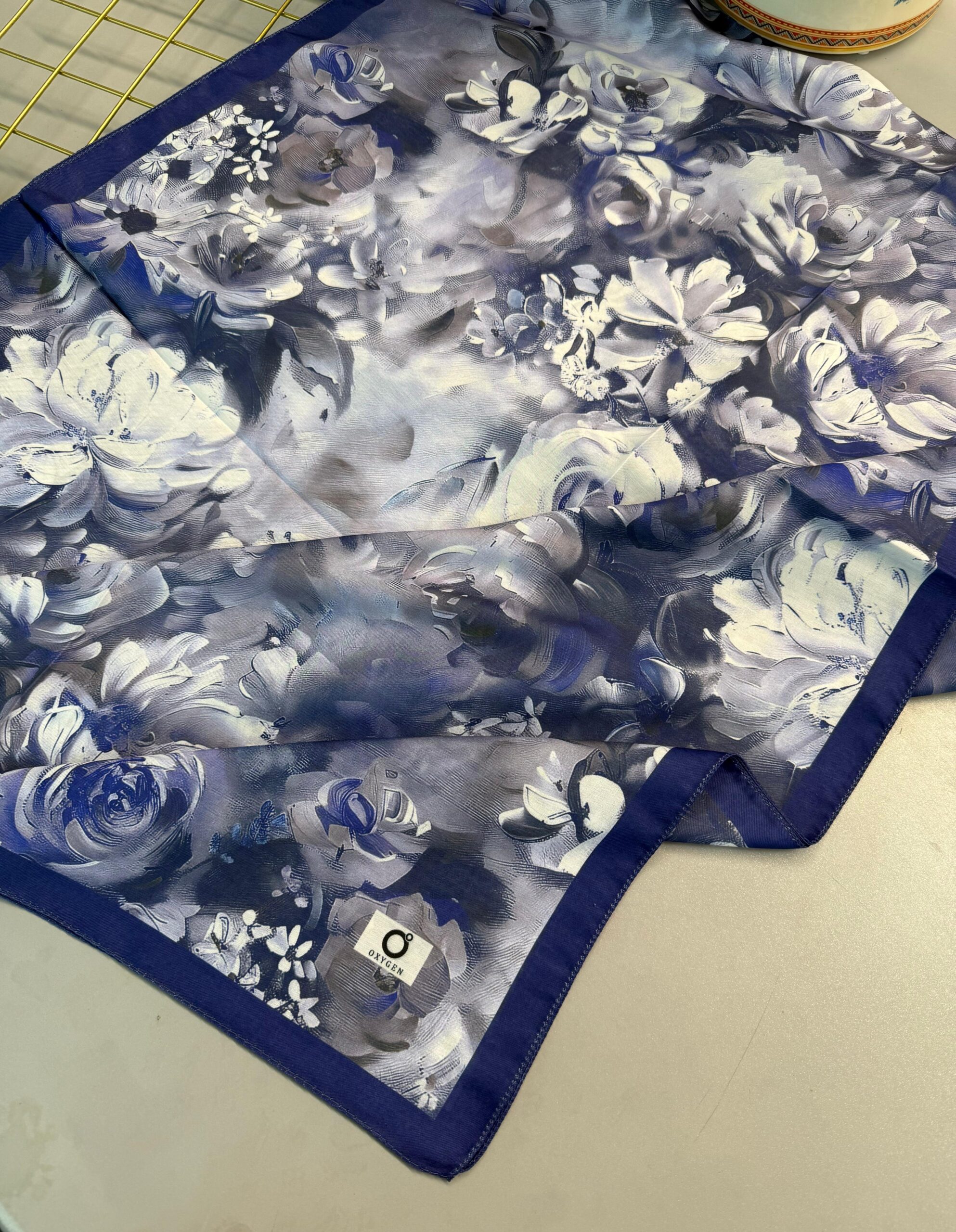 Mystic Bloom Desen Pamuk İpek Şal-Lacivert