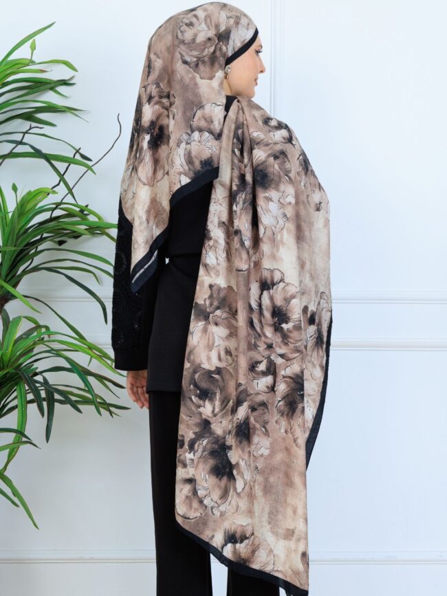 İnce detaylarla bezenmiş çiçek desenleri, şalın dokusuna derinlik ve hareket kazandırırken; sade ama etkileyici duruşuyla hem günlük kullanımda hem de özel anlarda tercih edebileceğiniz zamansız bir parça sunar.