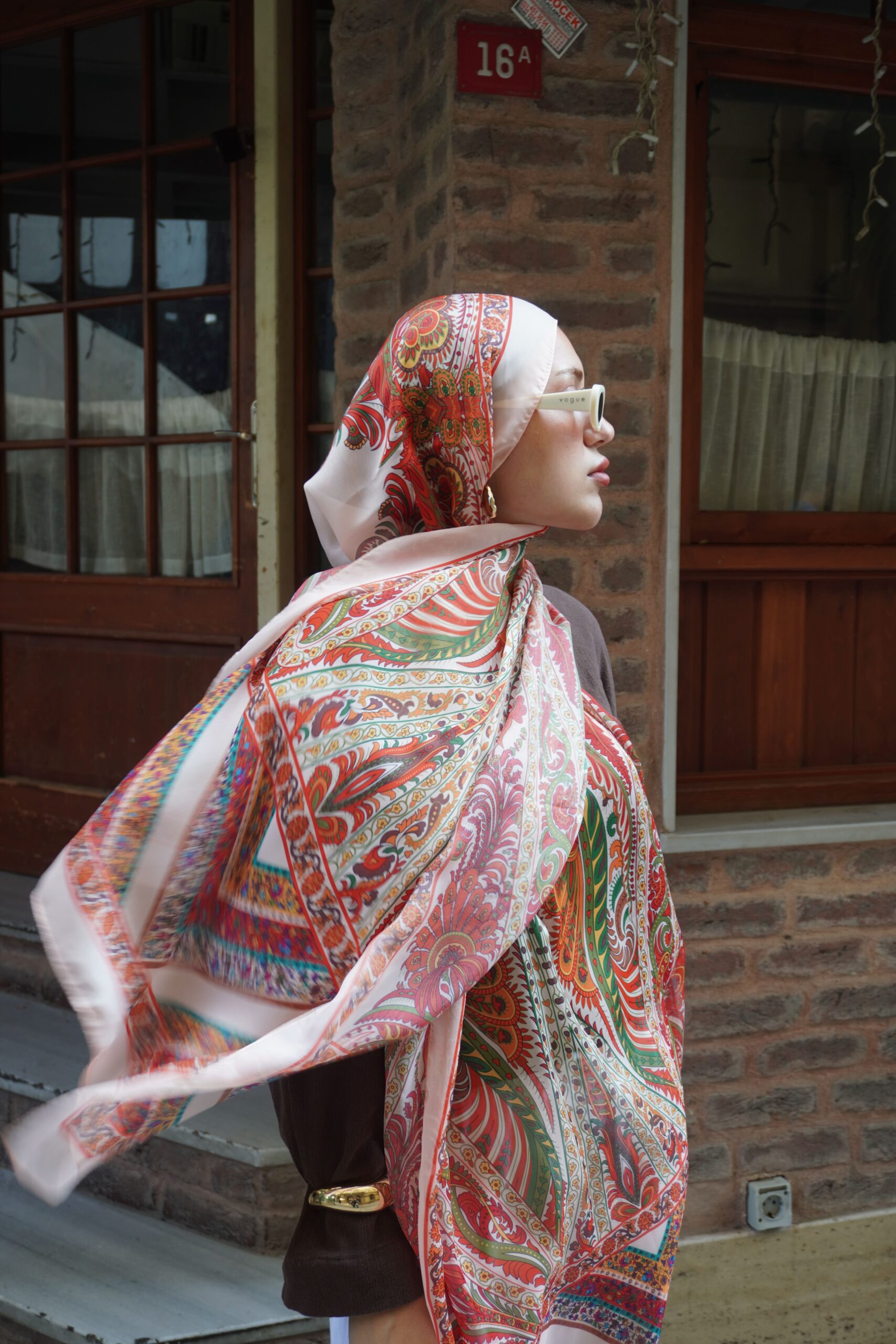 Mystic Bloom Desen Pamuk İpek Şal-Pastel