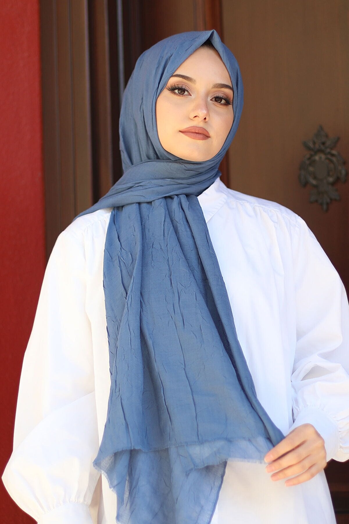 Organic Scarfs Bambu Kraş Şal Modeli – İndigo