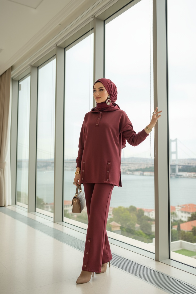 Hem günlük şıklıkta hem özel davetlerde rahatlıkla tercih edilebilecek bu takım, modern zarafeti geleneksel dokunuşlarla buluşturuyor.