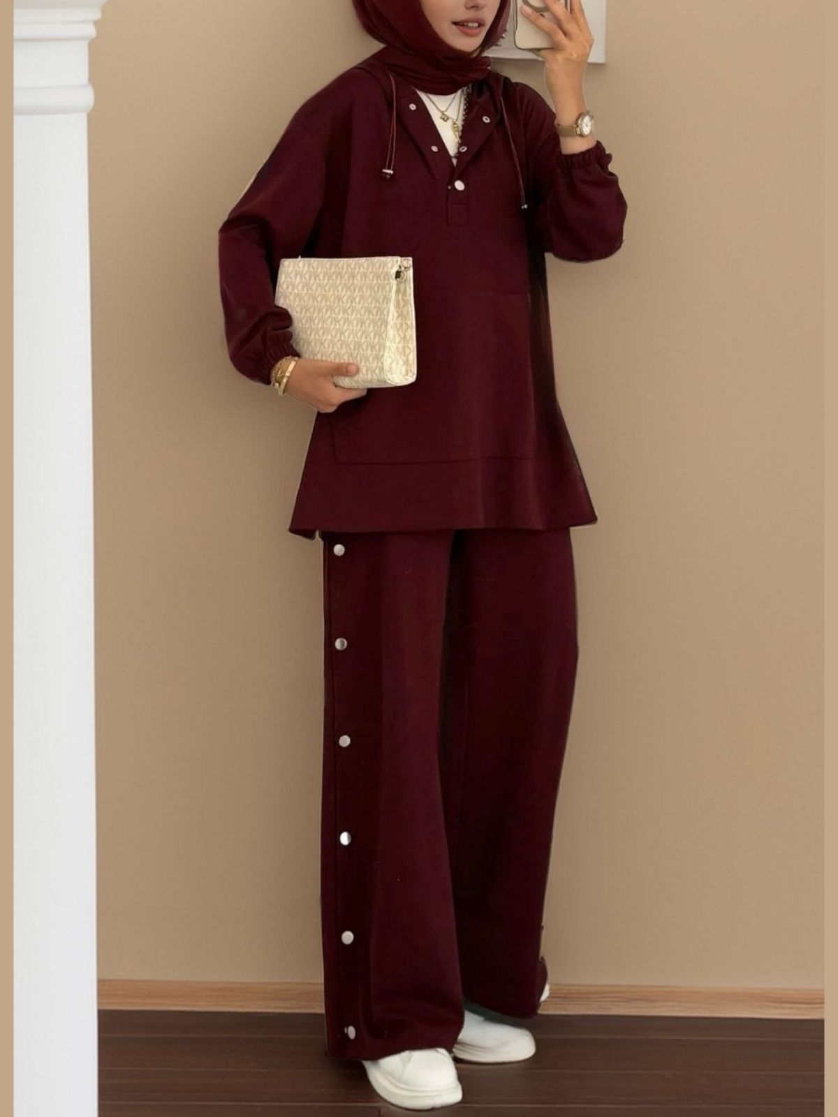 Premium Oysho Çıtçıtlı ı İkili Takım BÜYÜK BEDEN TK100242 – Bordo