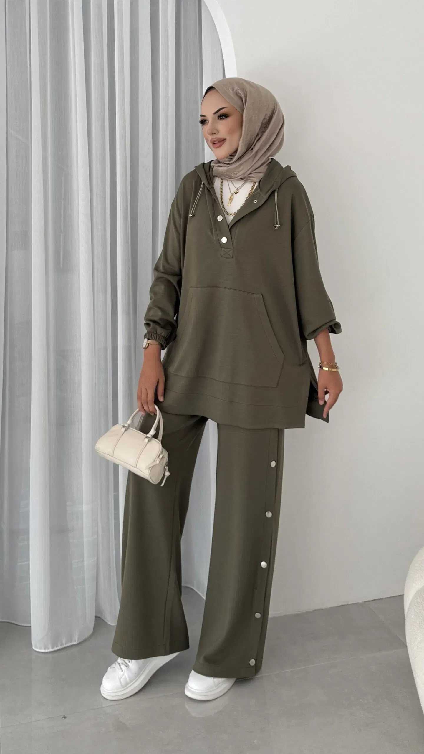 Premium Oysho Çıtçıtlı ı İkili Takım BÜYÜK BEDEN TK100242 - Haki