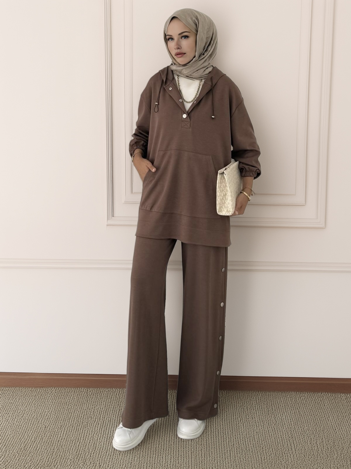 Premium Oysho Çıtçıtlı ı İkili Takım BÜYÜK BEDEN TK100242 – Kahve