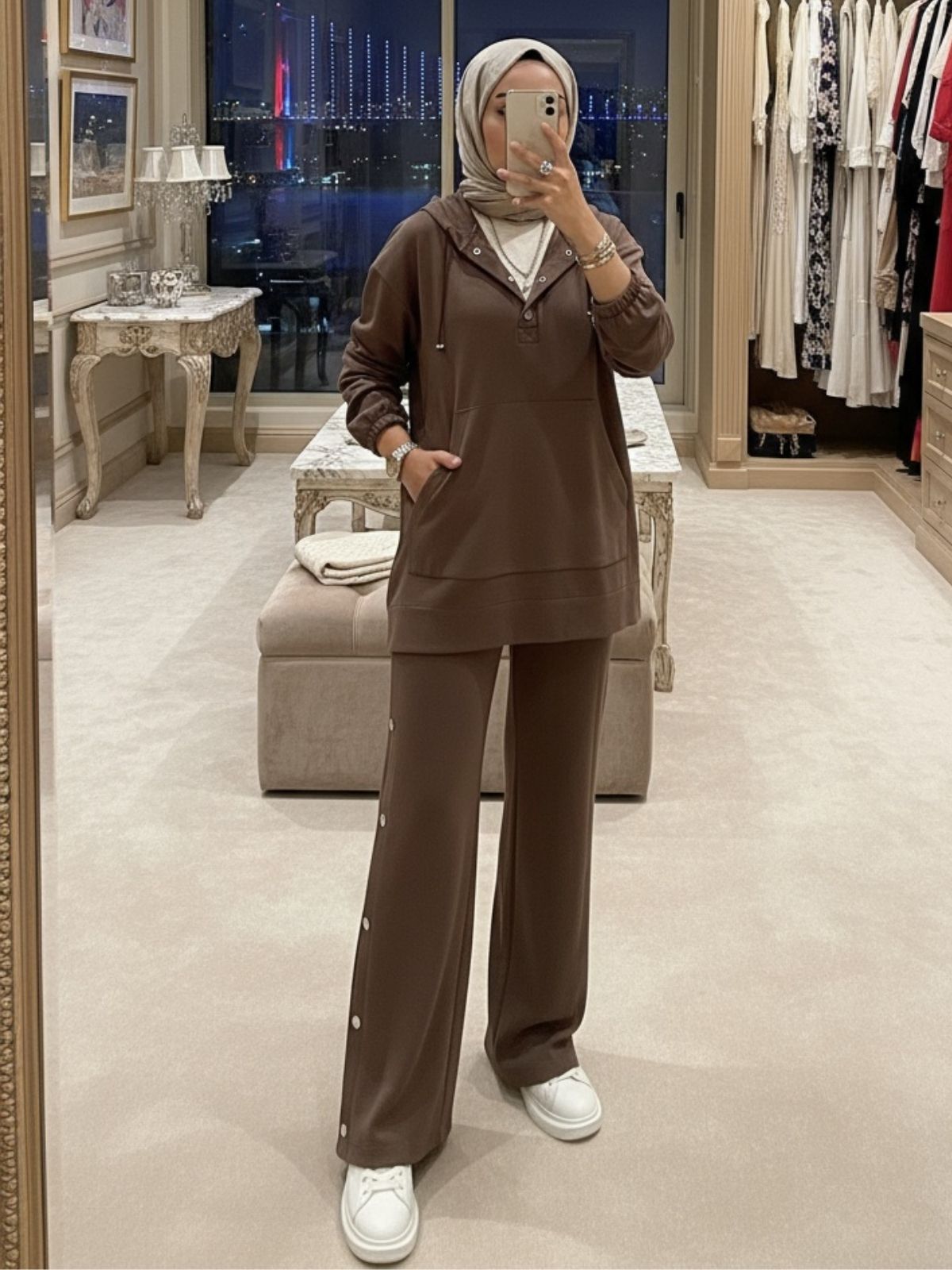 Premium Oysho Çıtçıtlı İkili Takım TK100242 – Taba