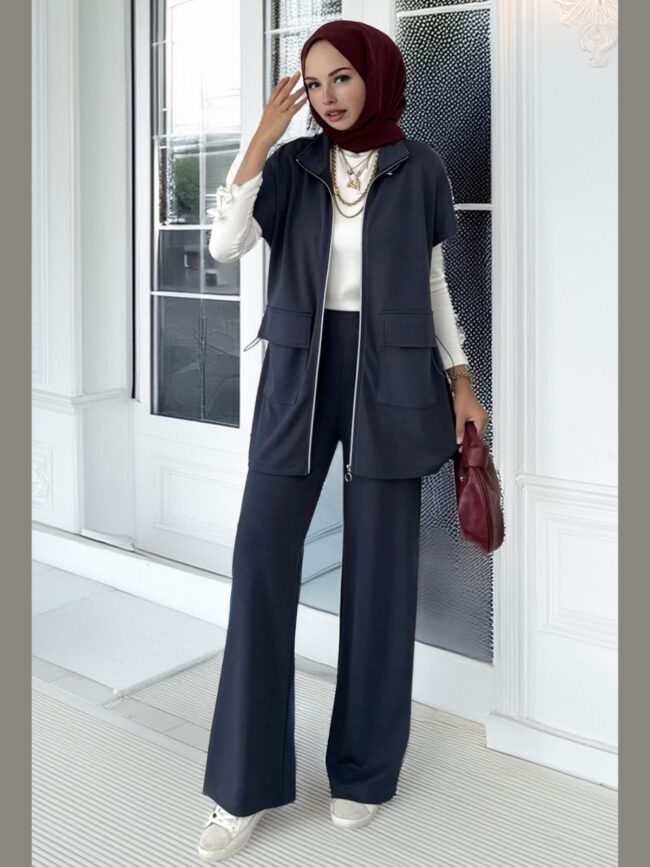 Hem günlük şıklıkta hem özel davetlerde rahatlıkla tercih edilebilecek bu takım, modern zarafeti geleneksel dokunuşlarla buluşturuyor.