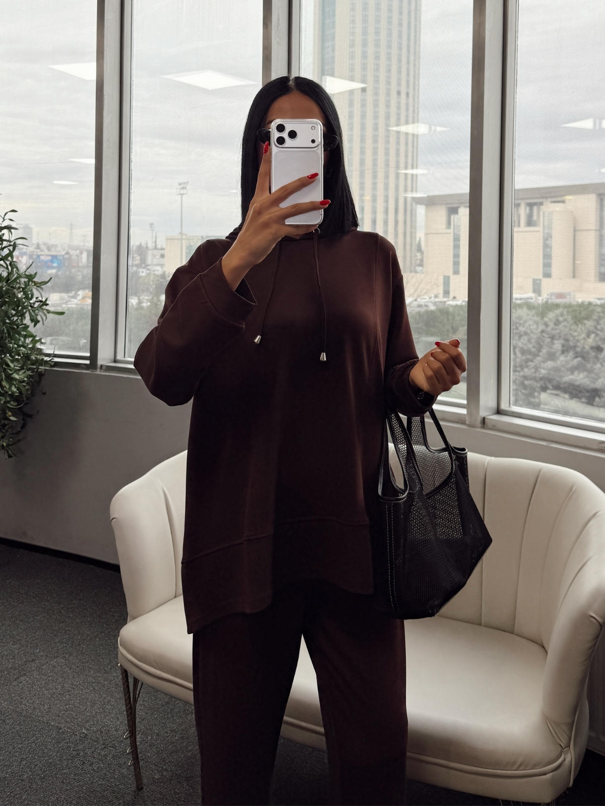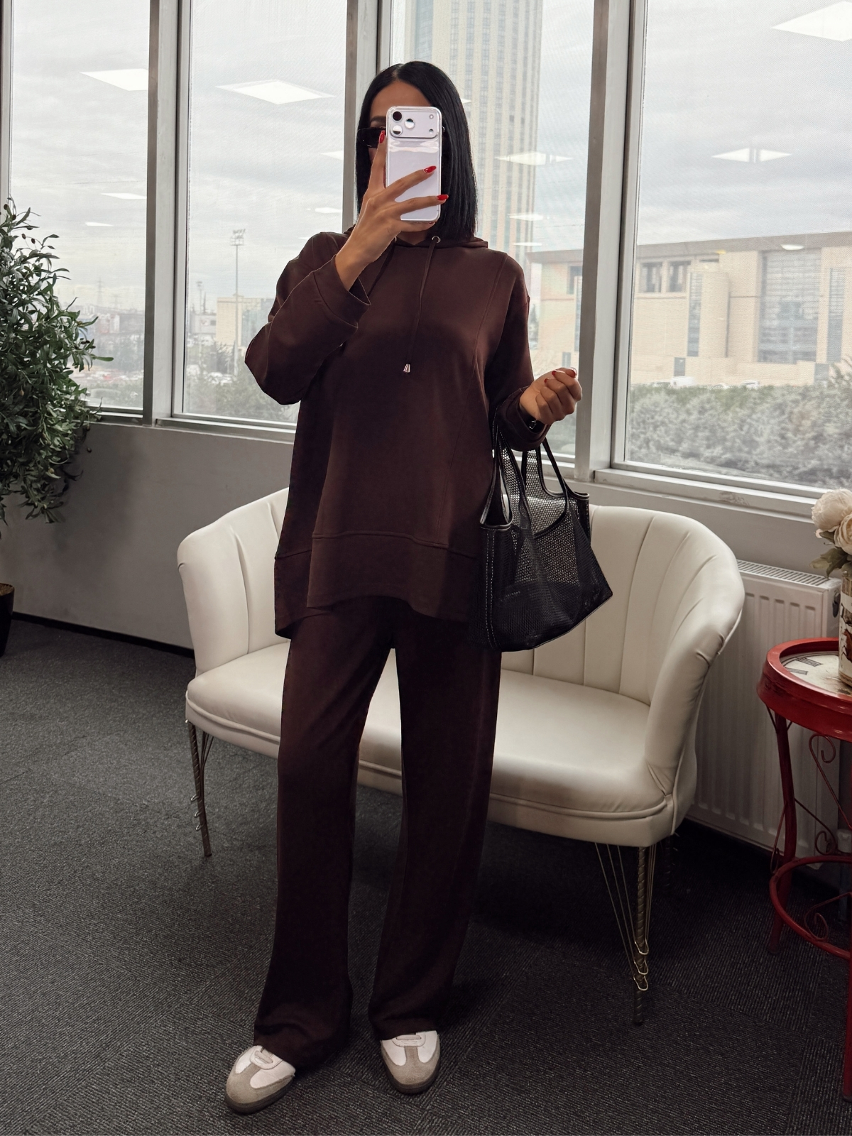 Tek takımla hem günlük hem de ofis kombinlerini çözmek isteyenler için Premium Oysho Edoril İkili Takım TK100255 – Acı Kahve, pratik ve çok yönlü bir alternatif sunar. Ofiste düz şal, sade takılar ve klasik ayakkabılarla kullanıldığında profesyonel ve özenli bir stil oluşturur. Hafta sonu programlarında ise daha rahat ayakkabılar, omuz çantası ve soft tonlarda şallarla birlikte spor-şık bir çizgiye uyarlanabilir. Bu çok yönlülük, takımı dolapta sık sık tercih edilebilecek temel parçalardan biri hâline getirir.Acı kahve tonunun kombin avantajı