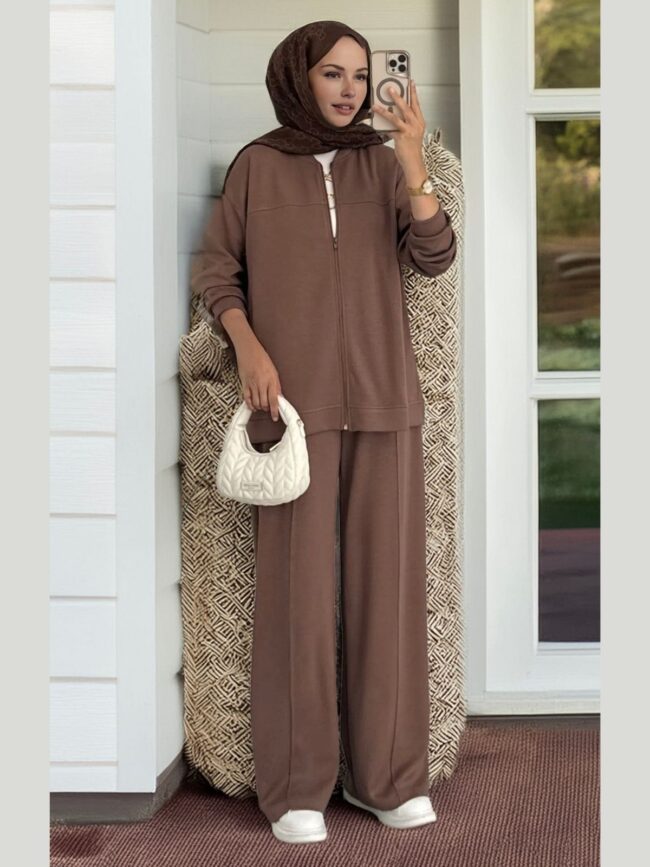 Oysho Fermuarlı Basic İkili Takım BÜYÜK BEDEN TK2962 – Karamel