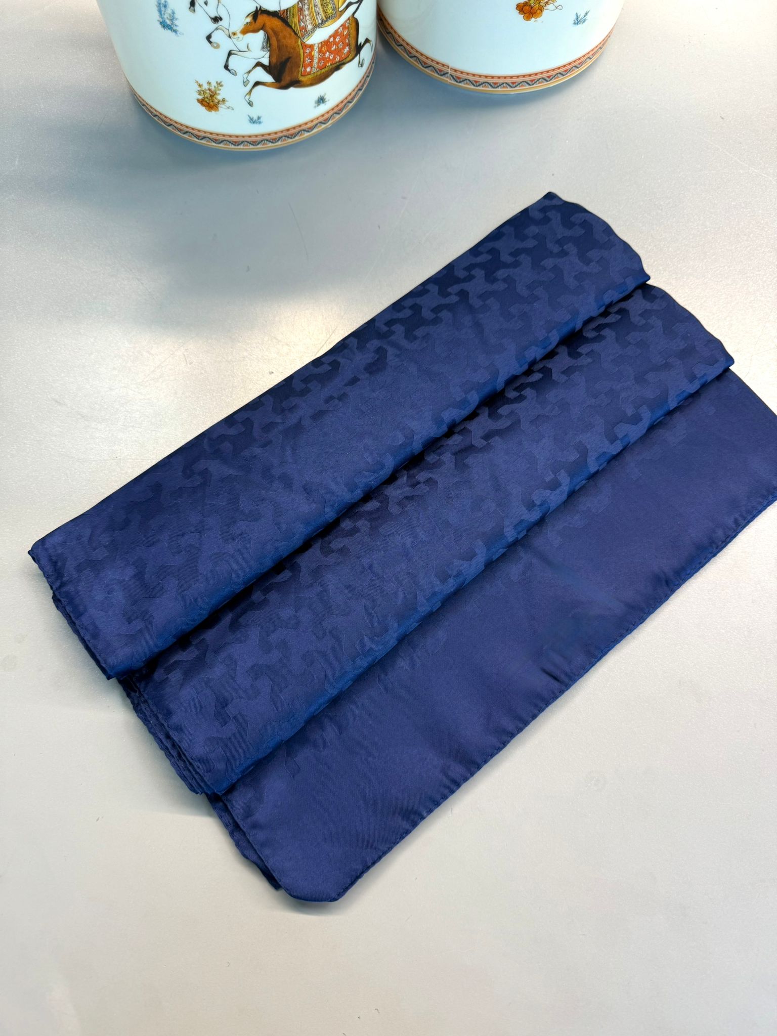 Puzzle Desen Pamuk İpeksi Jakar Şal-53354-Lacivert