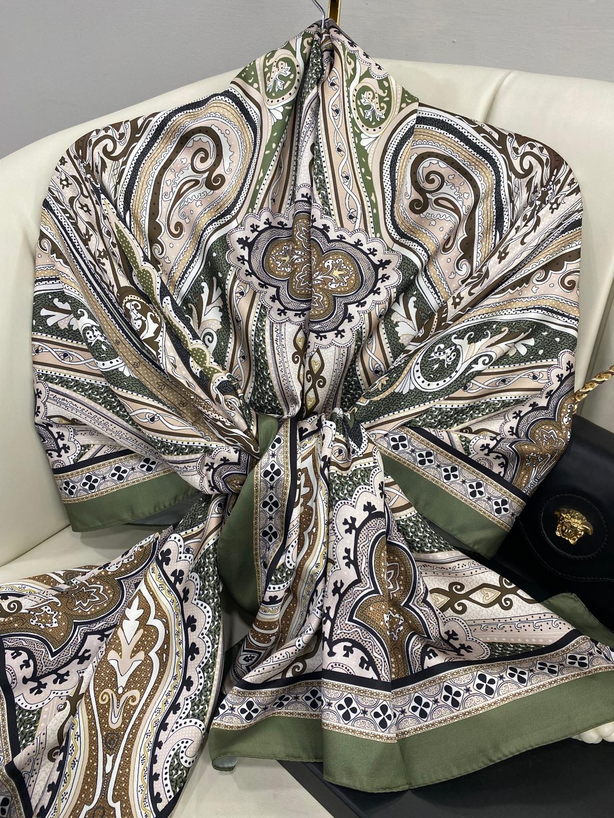 Rüzgar Desen Vual İpek Şal -122336-Bambu Yeşili