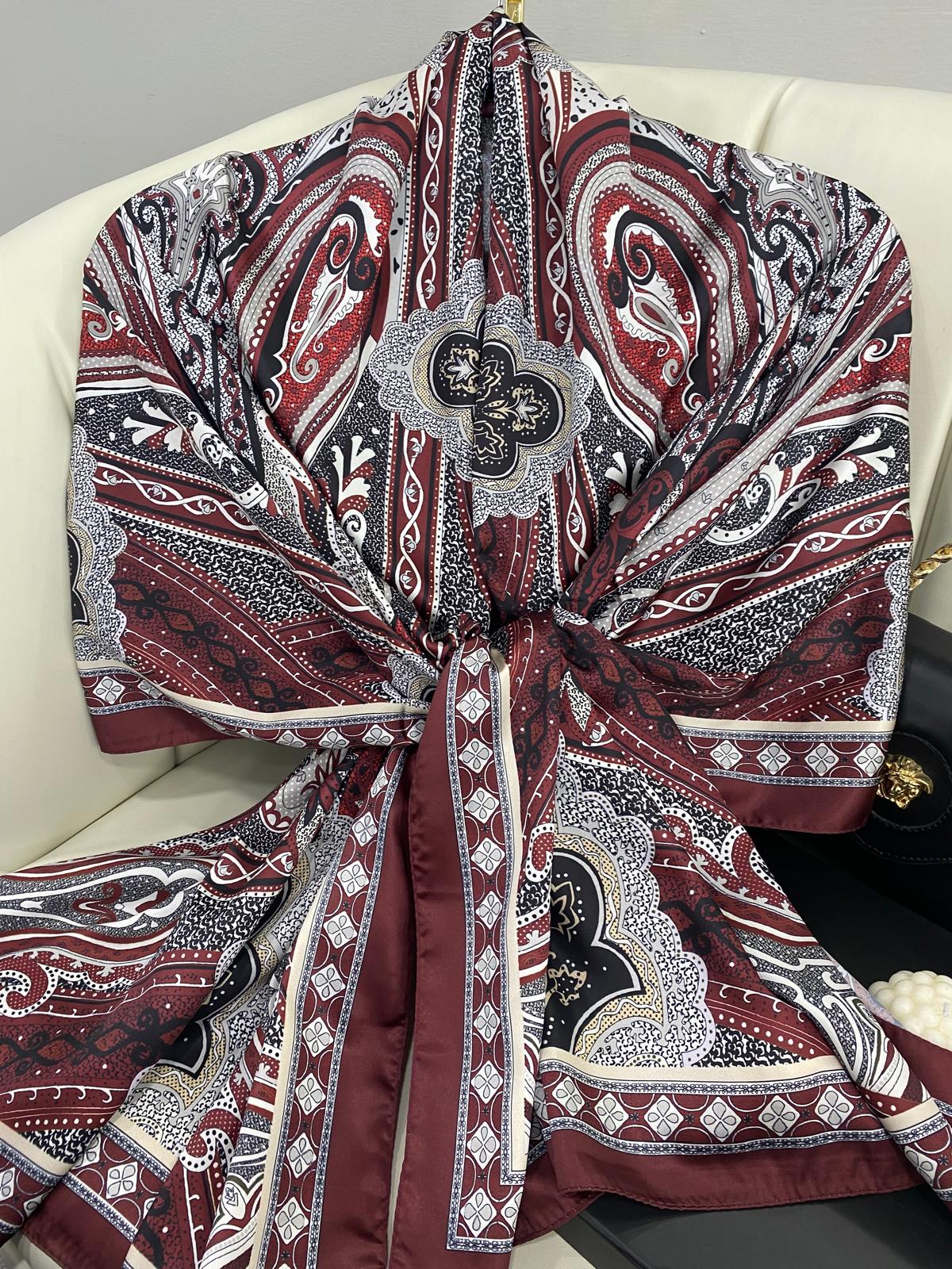 Rüzgar Desen Vual İpek Şal -122336-Vişne Çürüğü