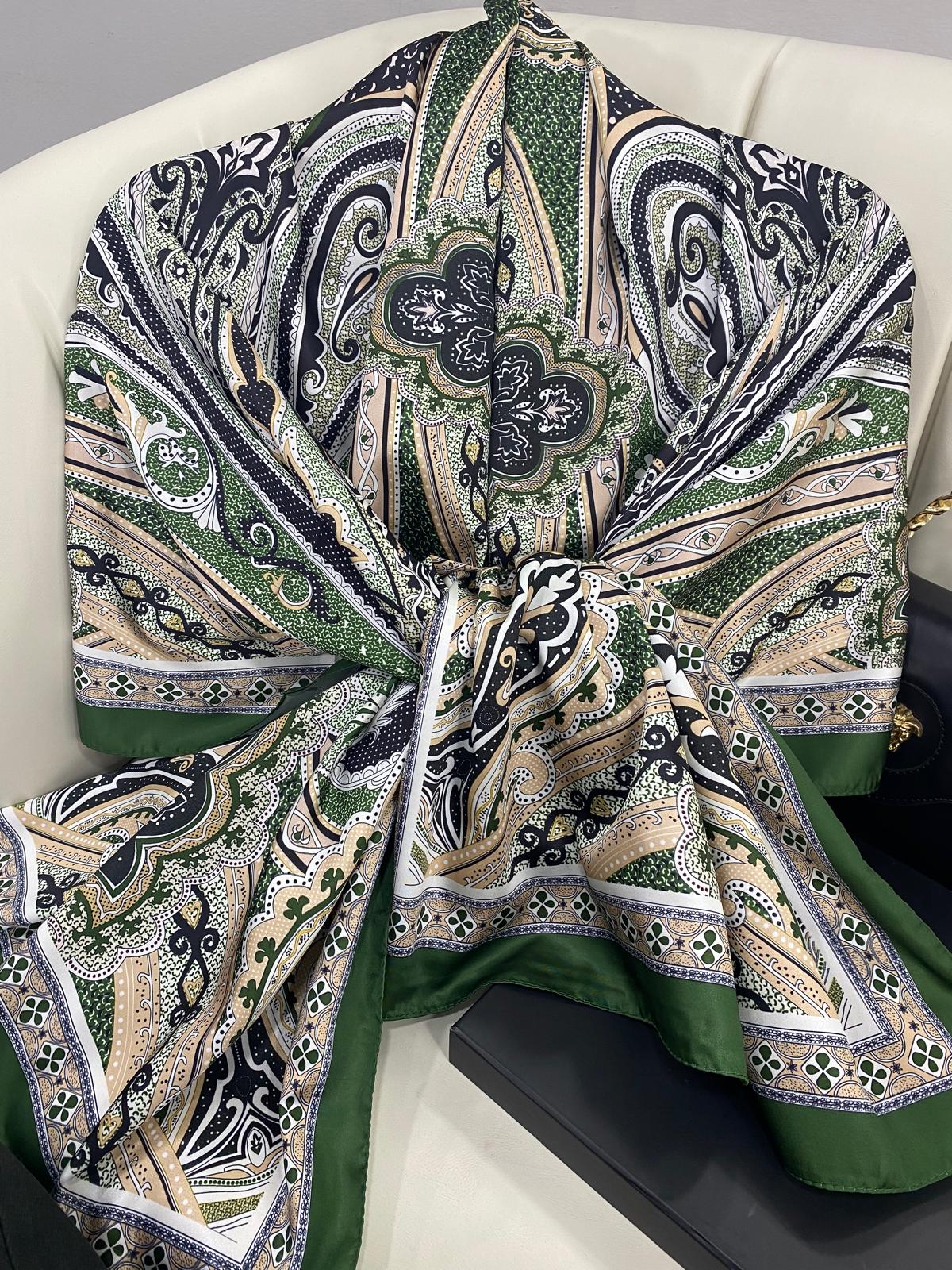 Rüzgar Desen Vual İpek Şal -122336-Zeytin Yeşili