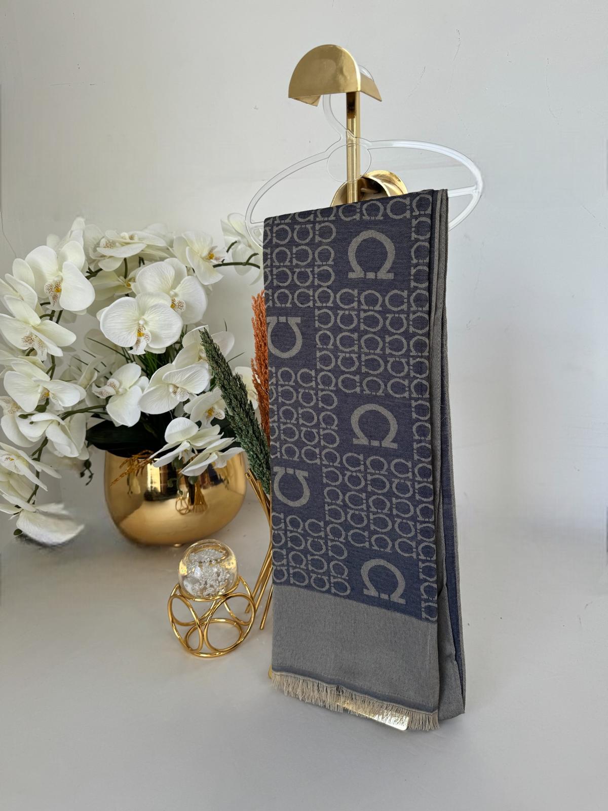 Salvator Çift Taraflı Pamuk Jakar Şal 77012 – Lacivert