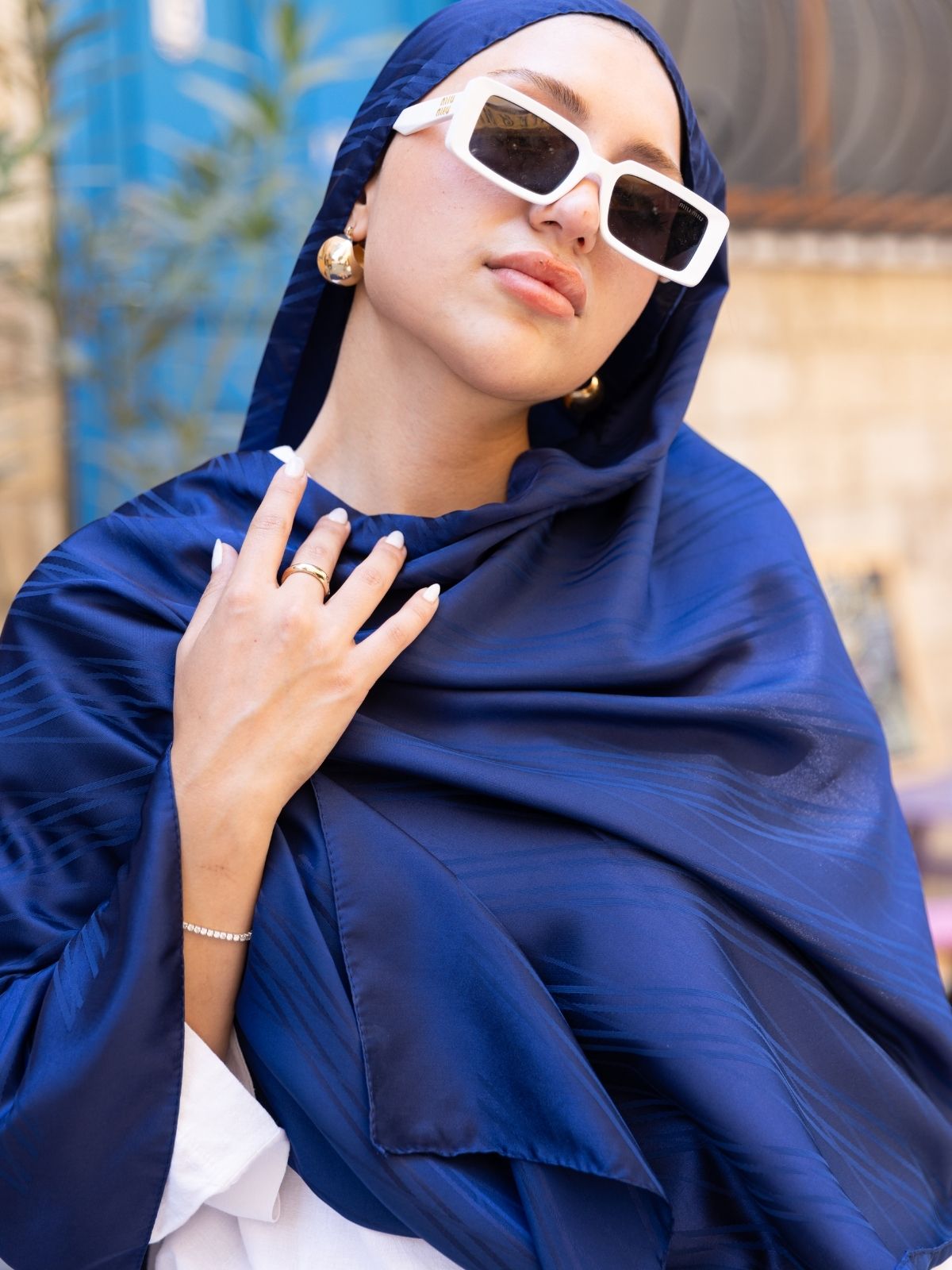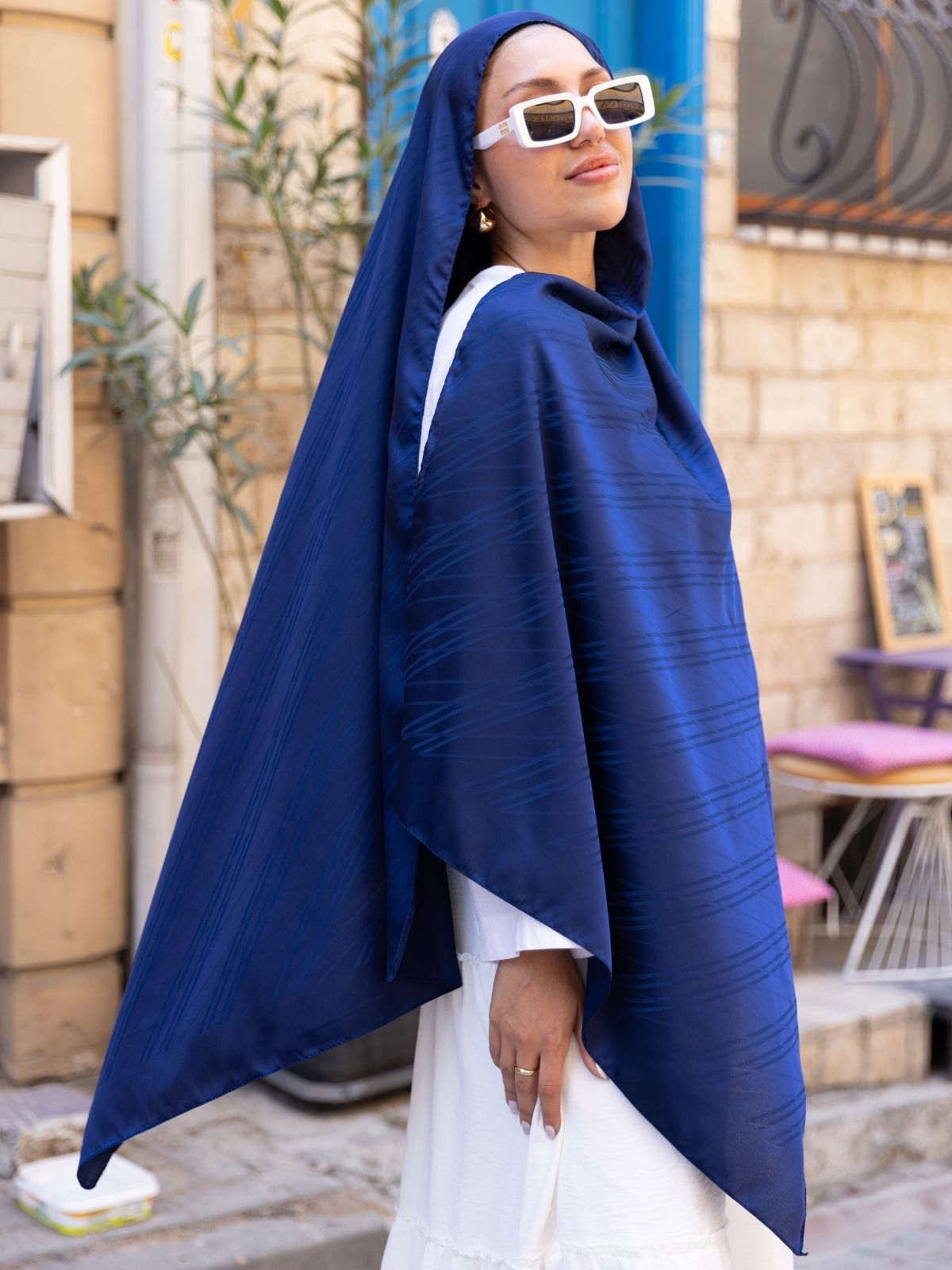 Sedef Desen Pamuk İpeksi Jakar Şal-53354-Lacivert