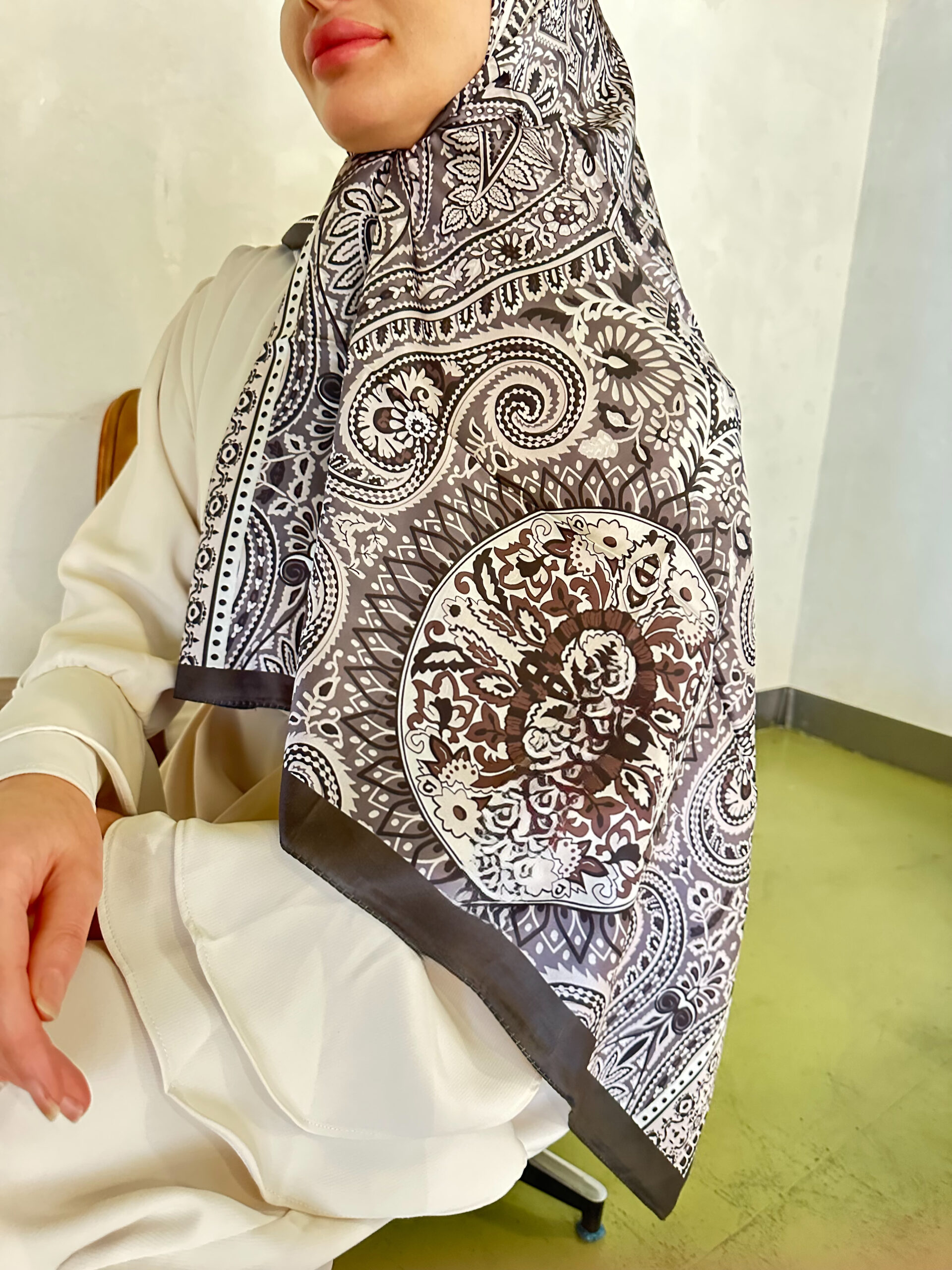 Mandala Desen Pamuk İpeksi Şal – 452366- Kahve
