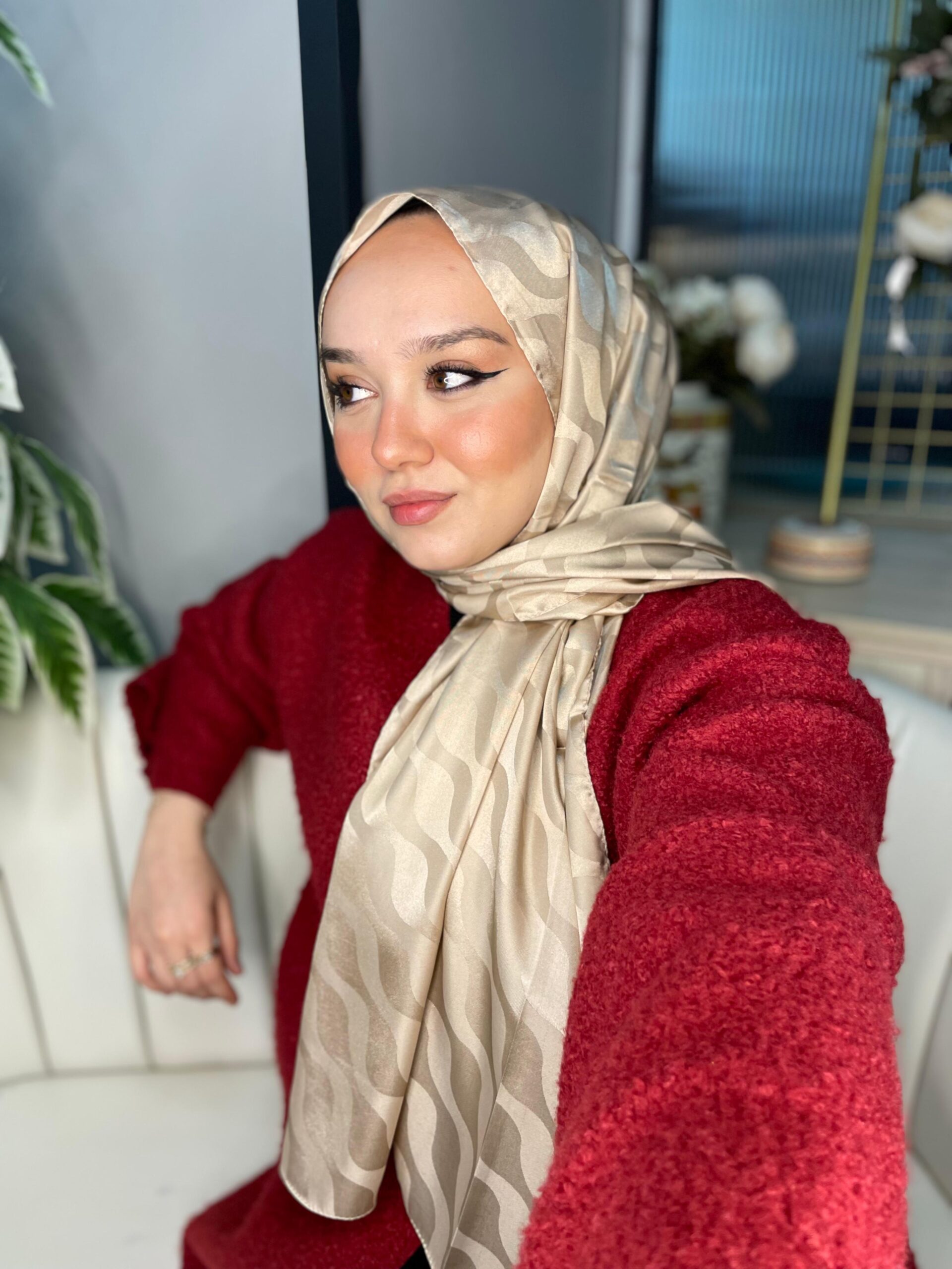 Su Yolu Pamuk Jakar Şal –Sütlü Krem