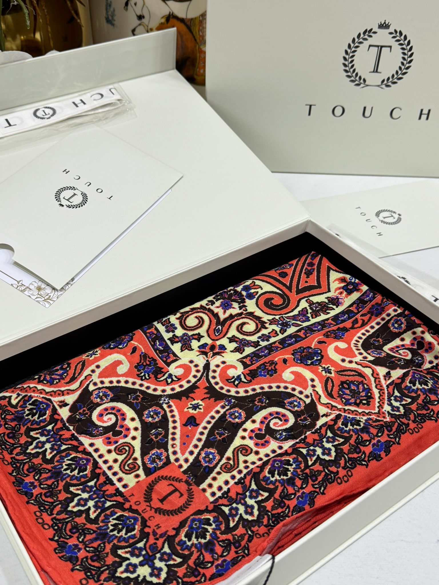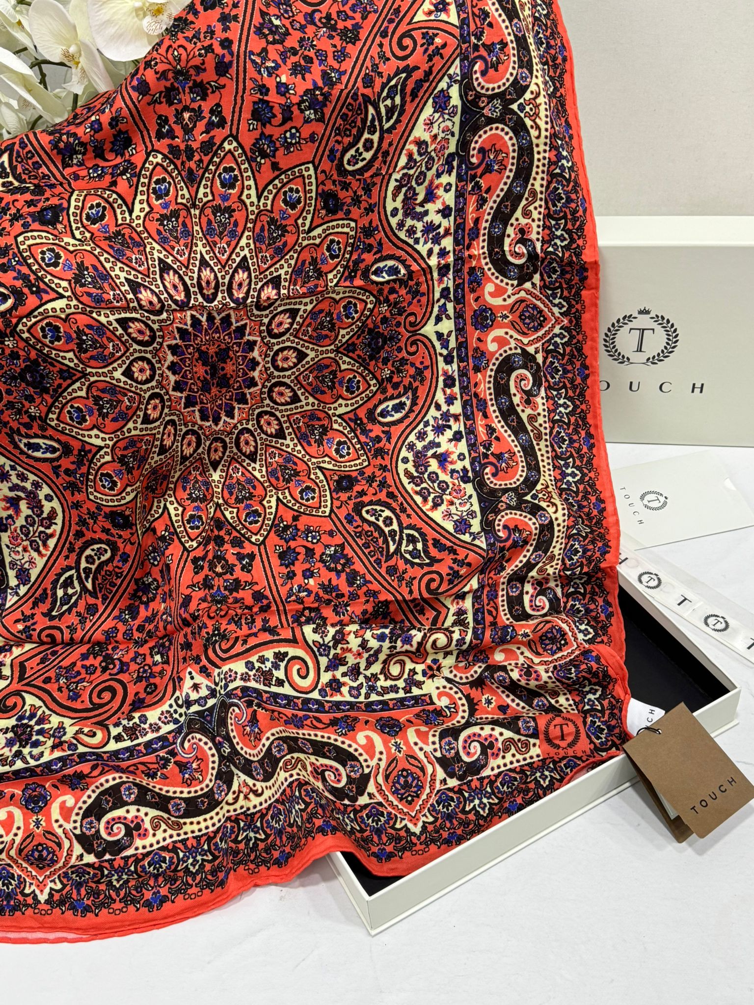 Touch İthal Etnik Desen Yün İpek Şal 34330 - Turuncu