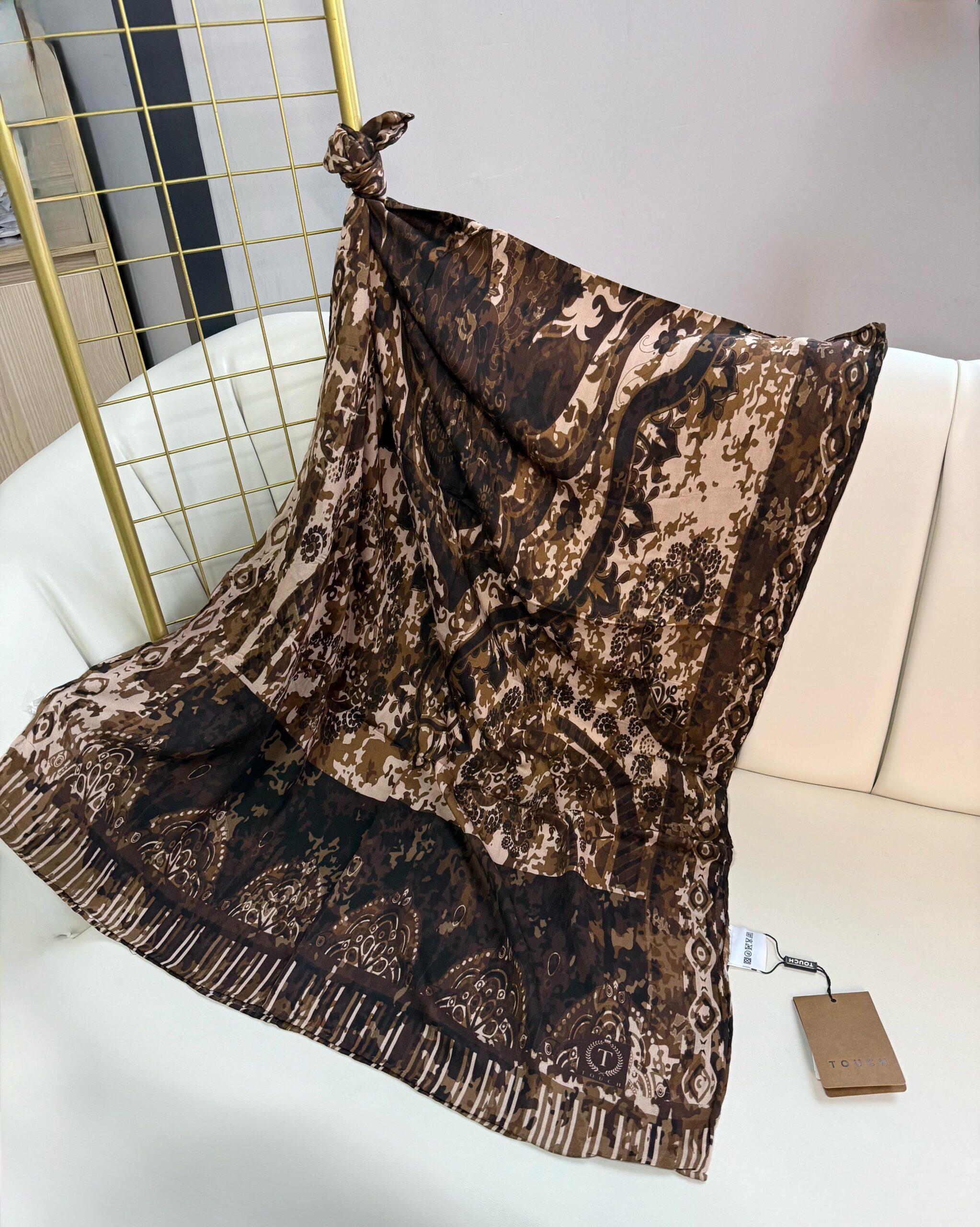 Touch İthal Etnik Desen Yün İpek Şal-34550-Sütlü Kahve