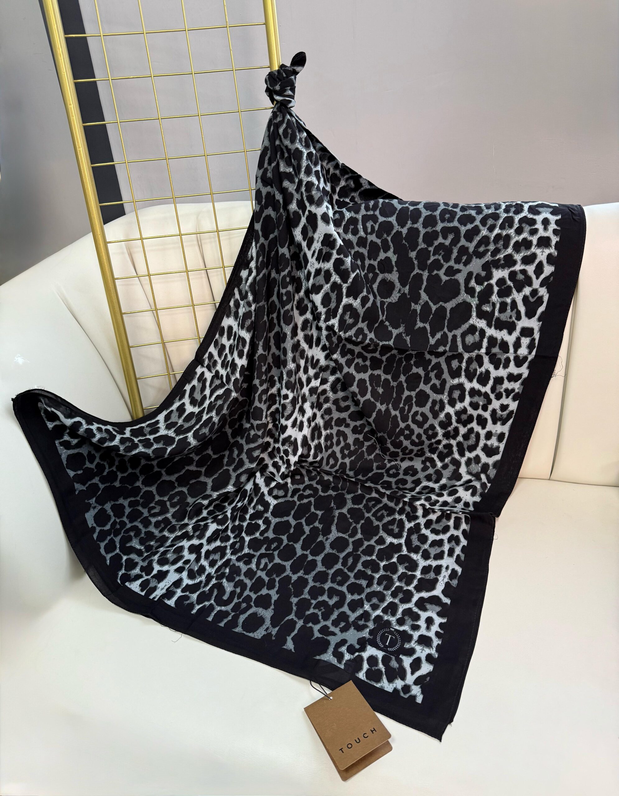 Touch ithal Leopar Pamuk İpek Şal-415420-Siyah-Gri