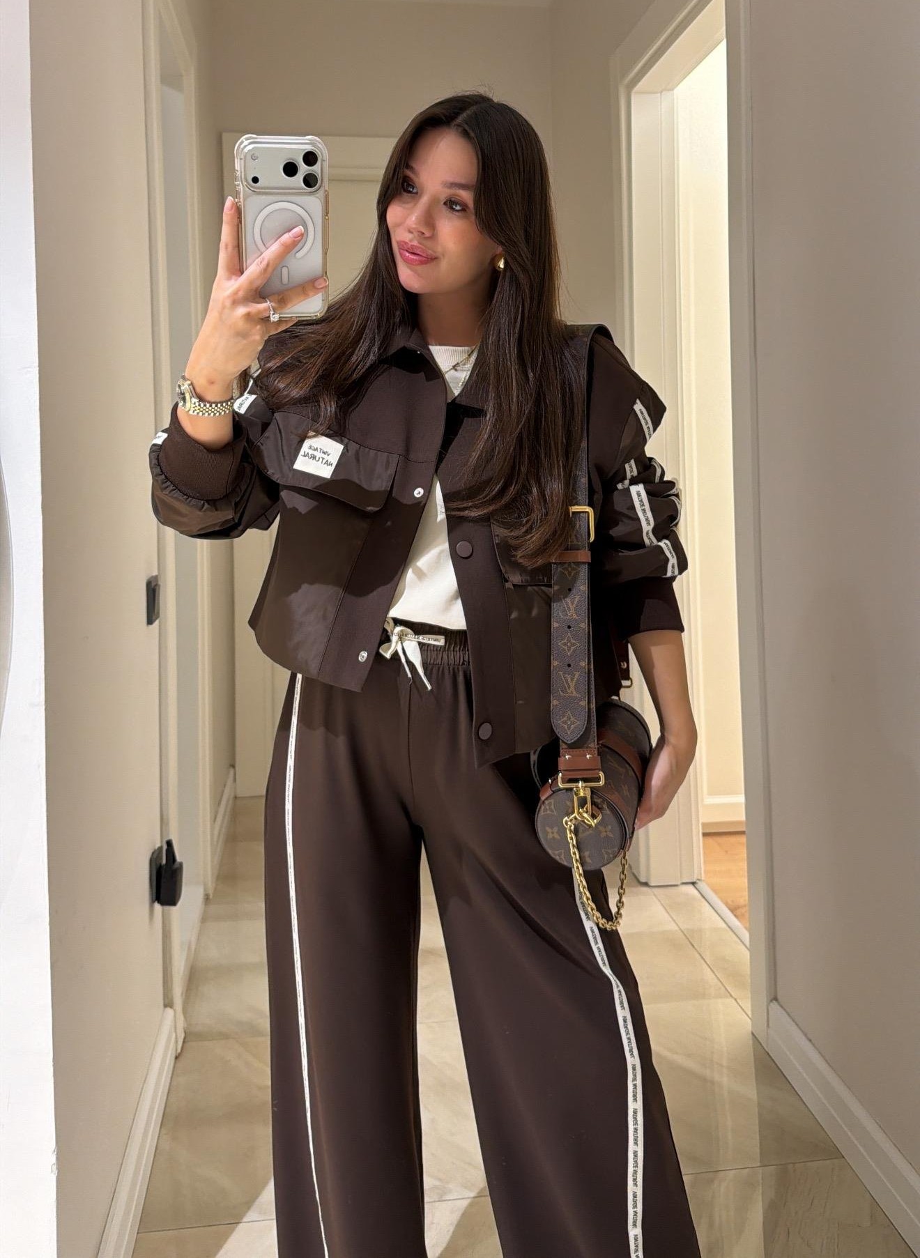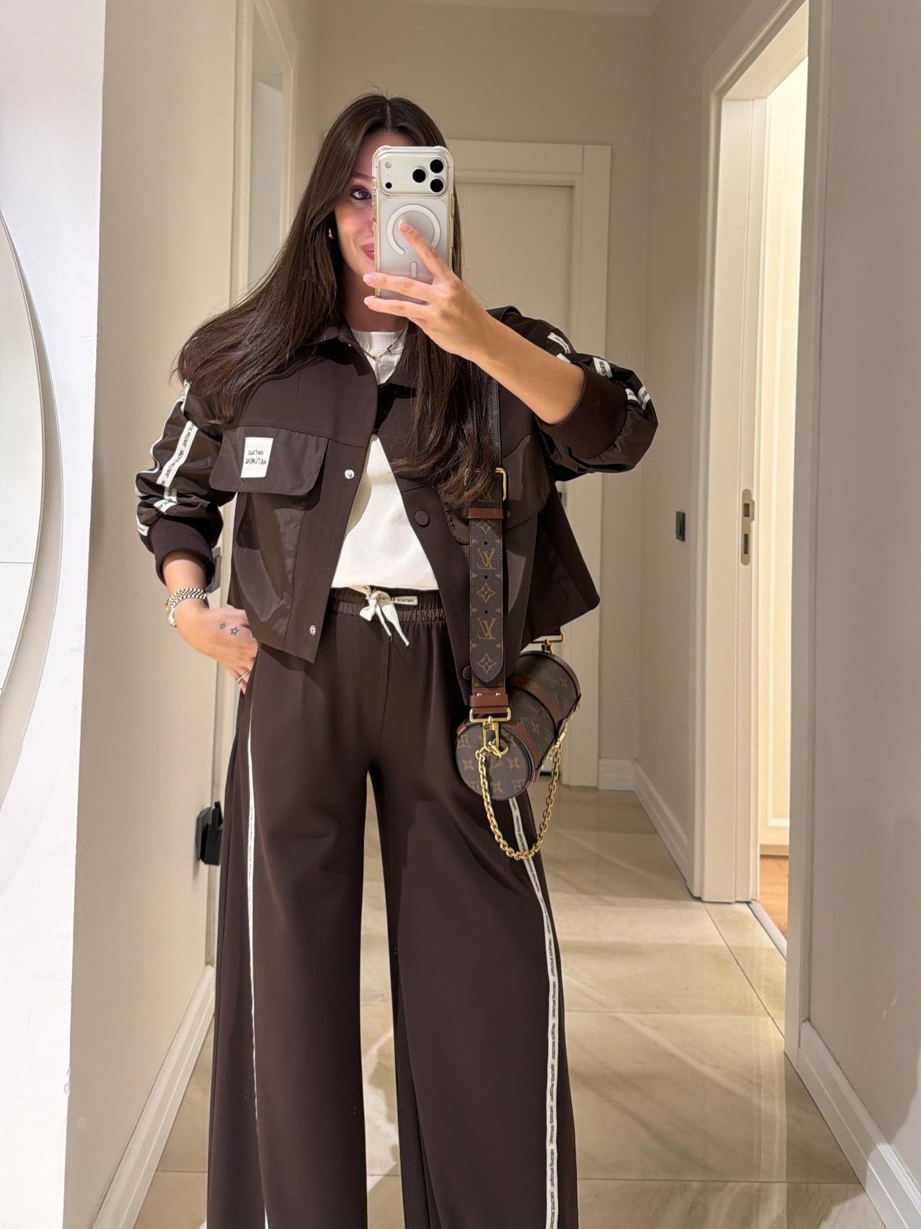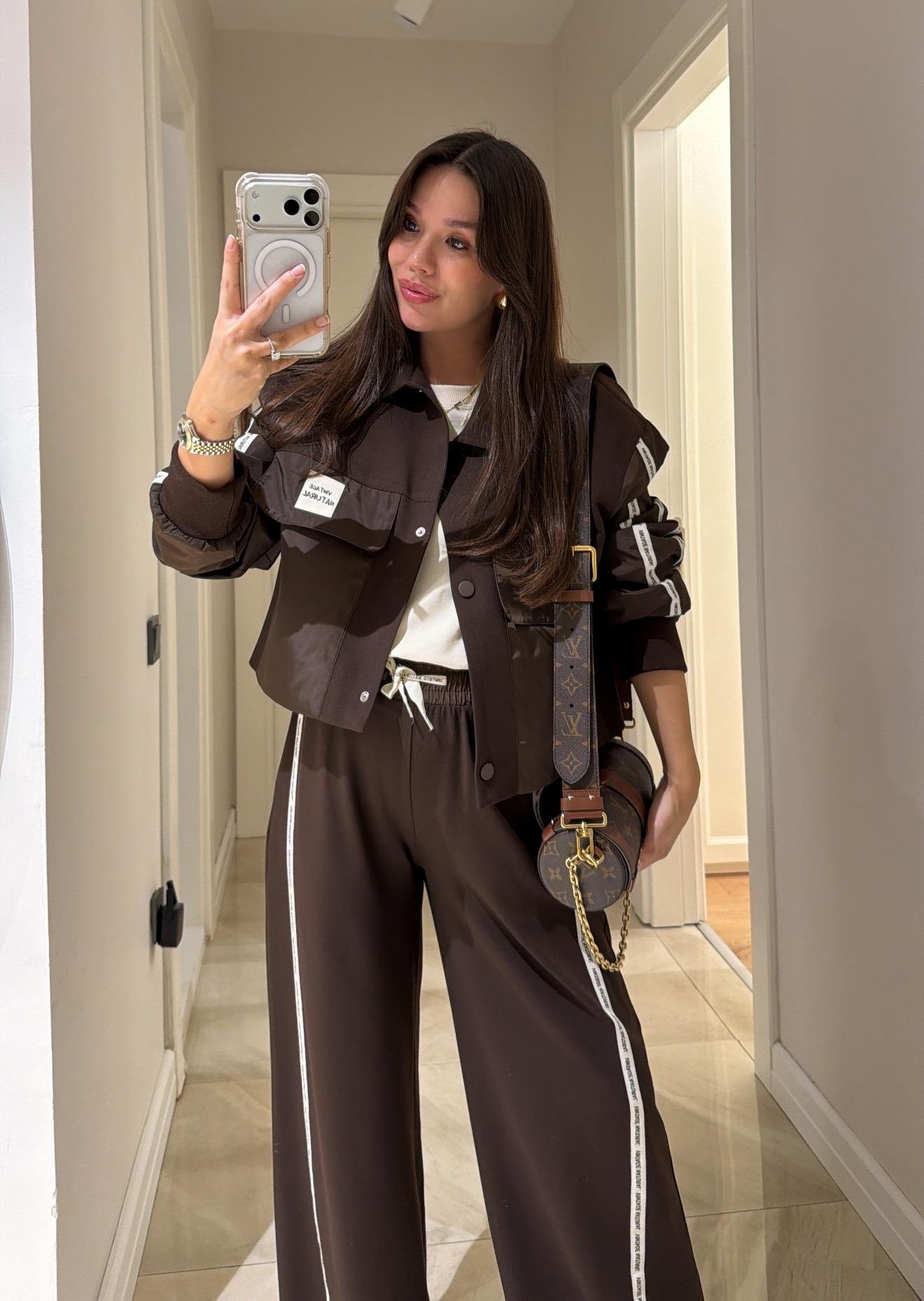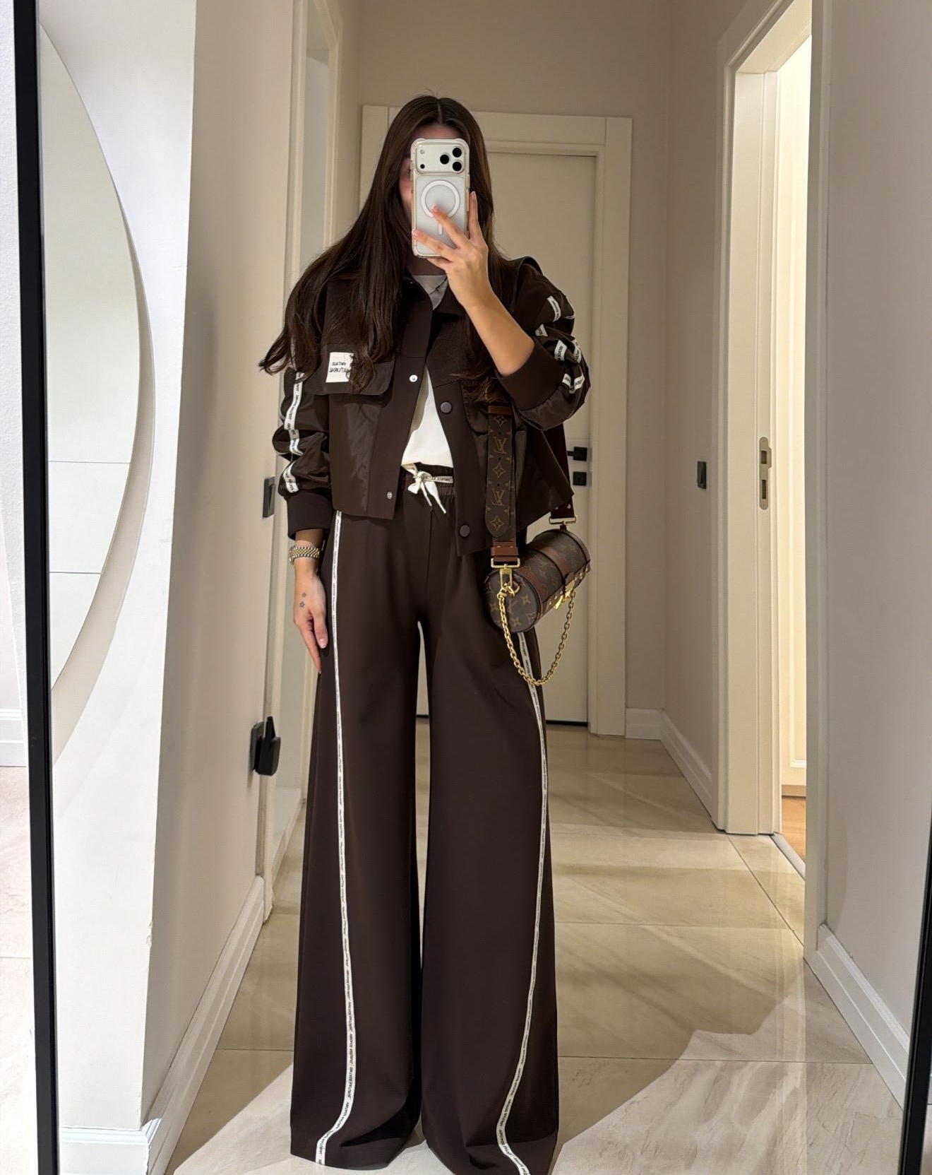 Twst Paraşüt Kol Detaylı Garnili İkili Takım- Kahve