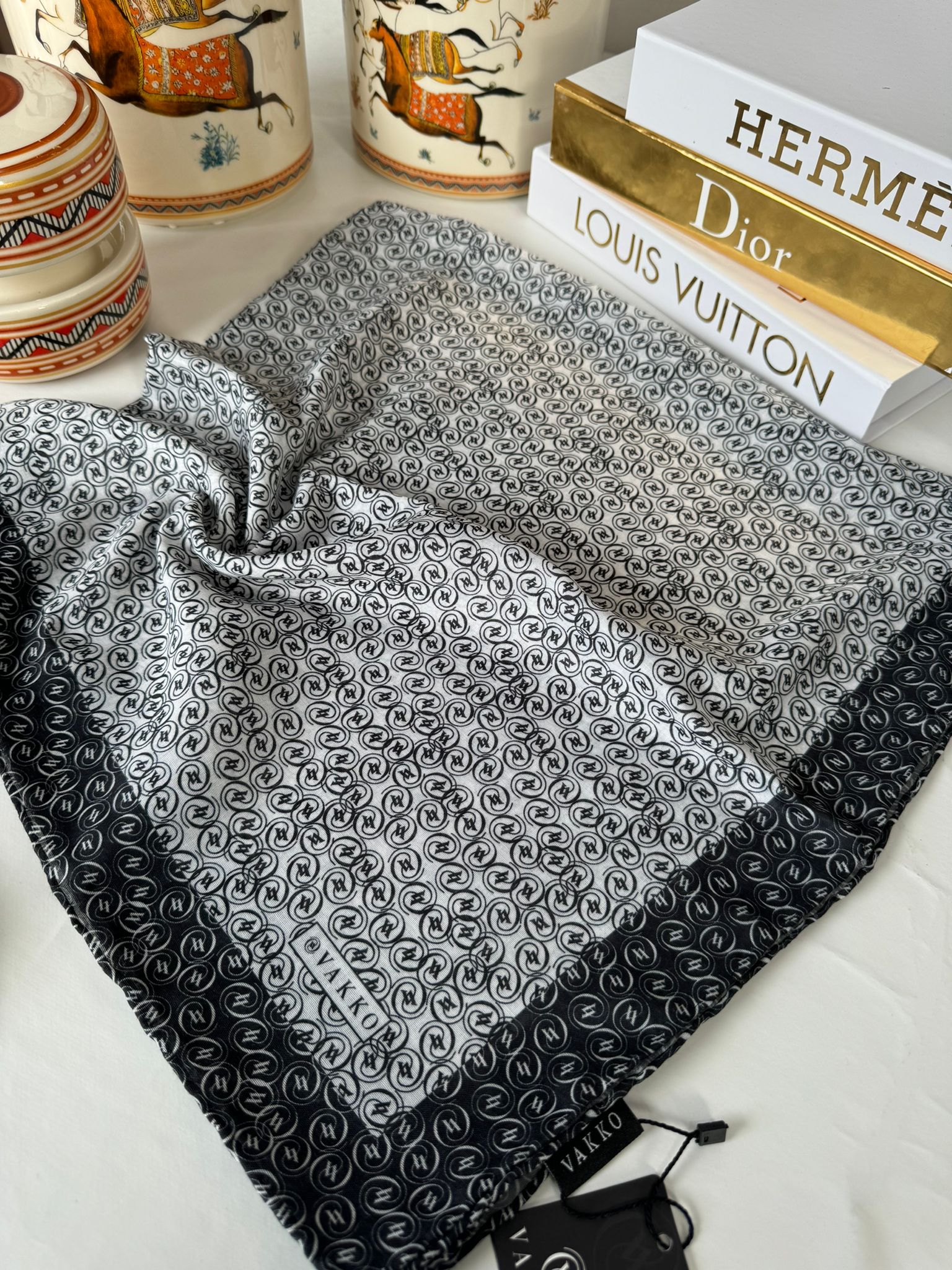Vakko Badem Desen Pamuk İpeksi Eşarp 38460 – Siyah/Beyaz
