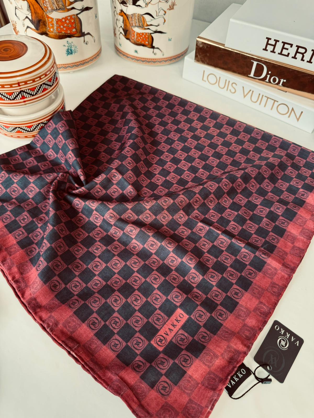 Vakko Dama Monogram Pamuk İpeksi Eşarp 38442 – Bordo
