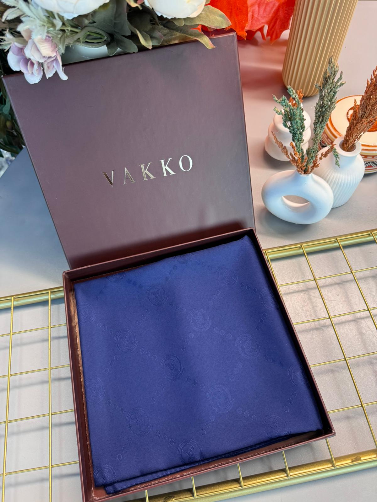 Vakko Desen Pamuk İpeksi Jakar Şal-53354-Lacivert